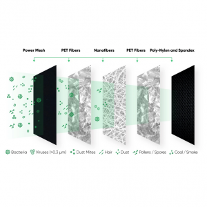 The O2 Nano Mask Filter features advanced 5-layer protection that blocks 99% of PM2.5 particles, including dust, allergens, bacteria, harmful gases, and wildfire smoke. Certified to EN143 European standards and verified through third-party testing, the filter delivers exceptional particle removal efficiency. Designed with comfort and simplicity in mind, the O2 Nano Mask blends seamlessly into daily life—from commuting to travel. Its reusable, machine-washable skin comes with three recyclable filters, each lasting up to 60 hours depending on air quality. For best performance, users should replace the filter once breathability noticeably decreases, ensuring continued comfort and protection.