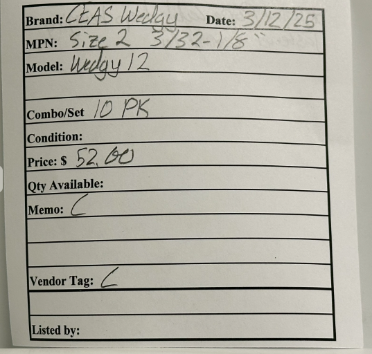 The 10 PK Ceas Wedgy (Size 2 3/32-1/8") Wire Rope Cable Drop Hanging Fastener Connector is designed to securely hang and support wire rope cables in various applications. These connectors are typically used for suspending or mounting cables, such as in lighting systems, signage, or industrial rigging setups. To use, simply thread the wire rope through the fastener and clamp it securely, providing a stable anchor point for the cable. The Size 2 3/32-1/8" range accommodates various small wire rope sizes, making it versatile for different projects. These fasteners are ideal for applications where a secure, reliable drop hanging solution is required, ensuring that cables stay firmly in place.