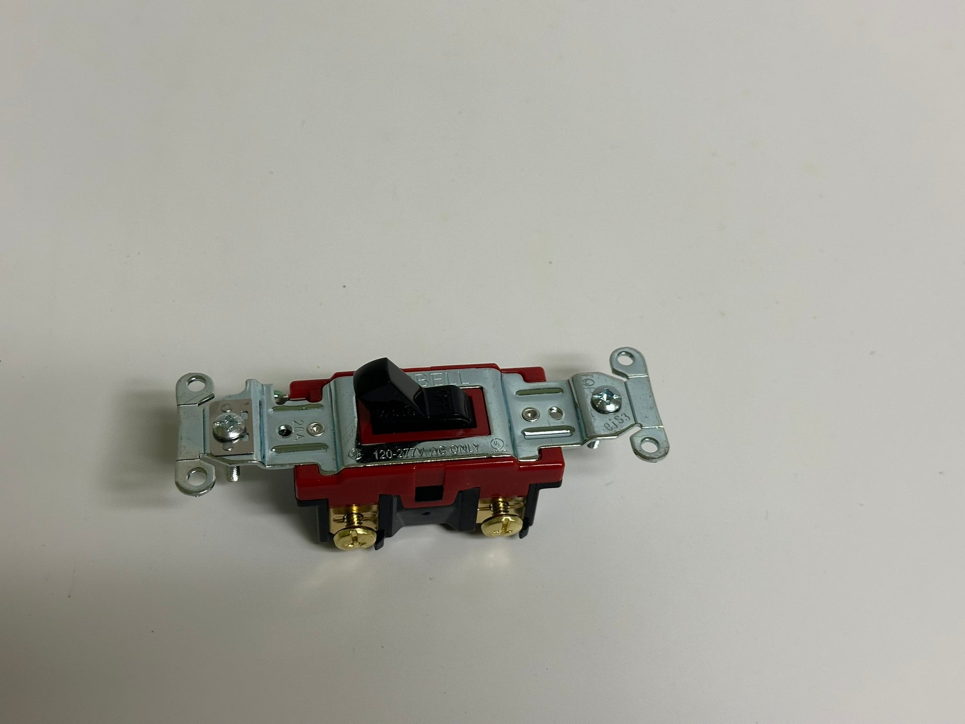 The Hubbell 1221BK is a heavy-duty single-pole toggle switch designed for general-purpose AC applications. It supports a 20A current rating and operates at voltages between 120V and 277V AC. The switch features a thermoplastic base and a corrosion-resistant zinc-plated steel bridge, ensuring durability in industrial environments. It accommodates wire sizes from #14 to #10 AWG solid or stranded copper and offers both back and side wiring options. With a 50,000 mechanical operation cycle rating and a maximum operating temperature of 75°C, the 1221BK is built for longevity. This product is brand new and comes in its original unopened box.