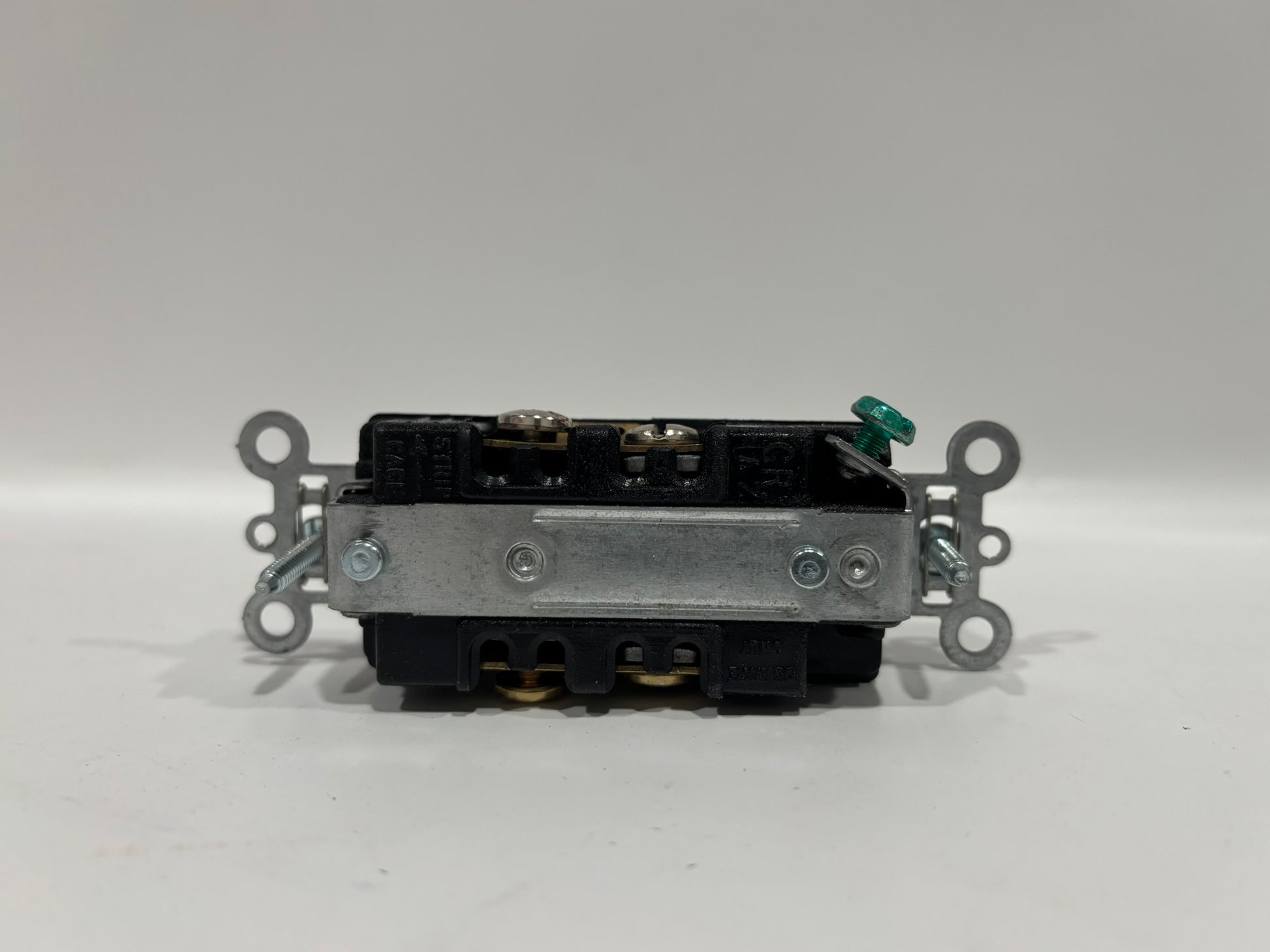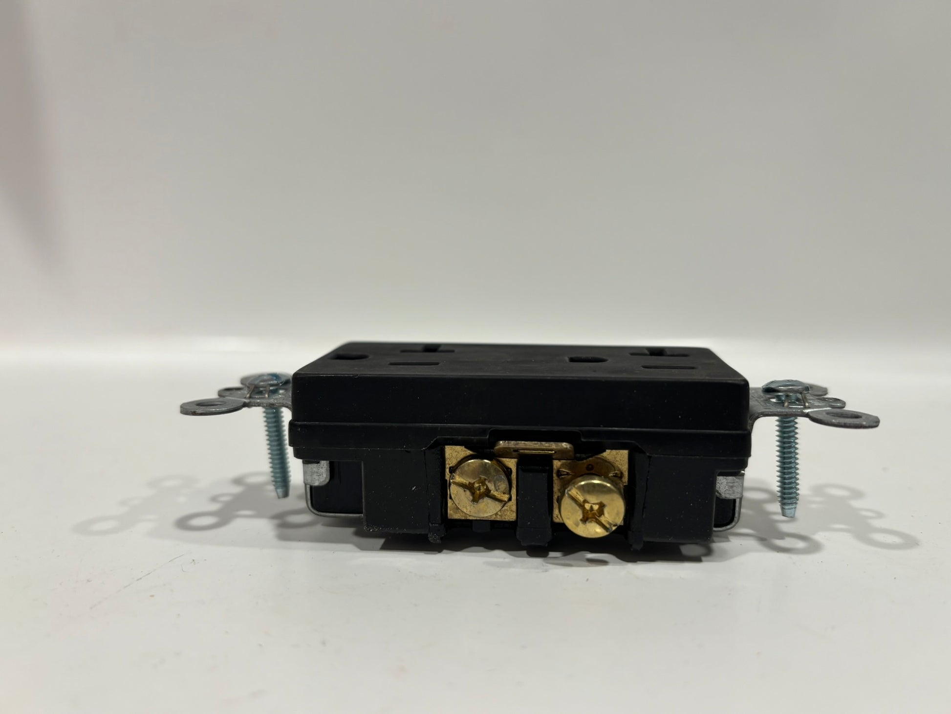 The Legrand 26352-BK is a 20A, 125V tamper-resistant decorator receptacle ideal for residential and commercial use. It features a dual mechanical shutter system to prevent accidental insertion of foreign objects. Made with a durable nylon face and thermoplastic back body, it offers impact resistance and longevity. The receptacle supports both back and side wiring for 10–14 AWG wires. UL and CSA certified, it meets strict safety and performance standards.
