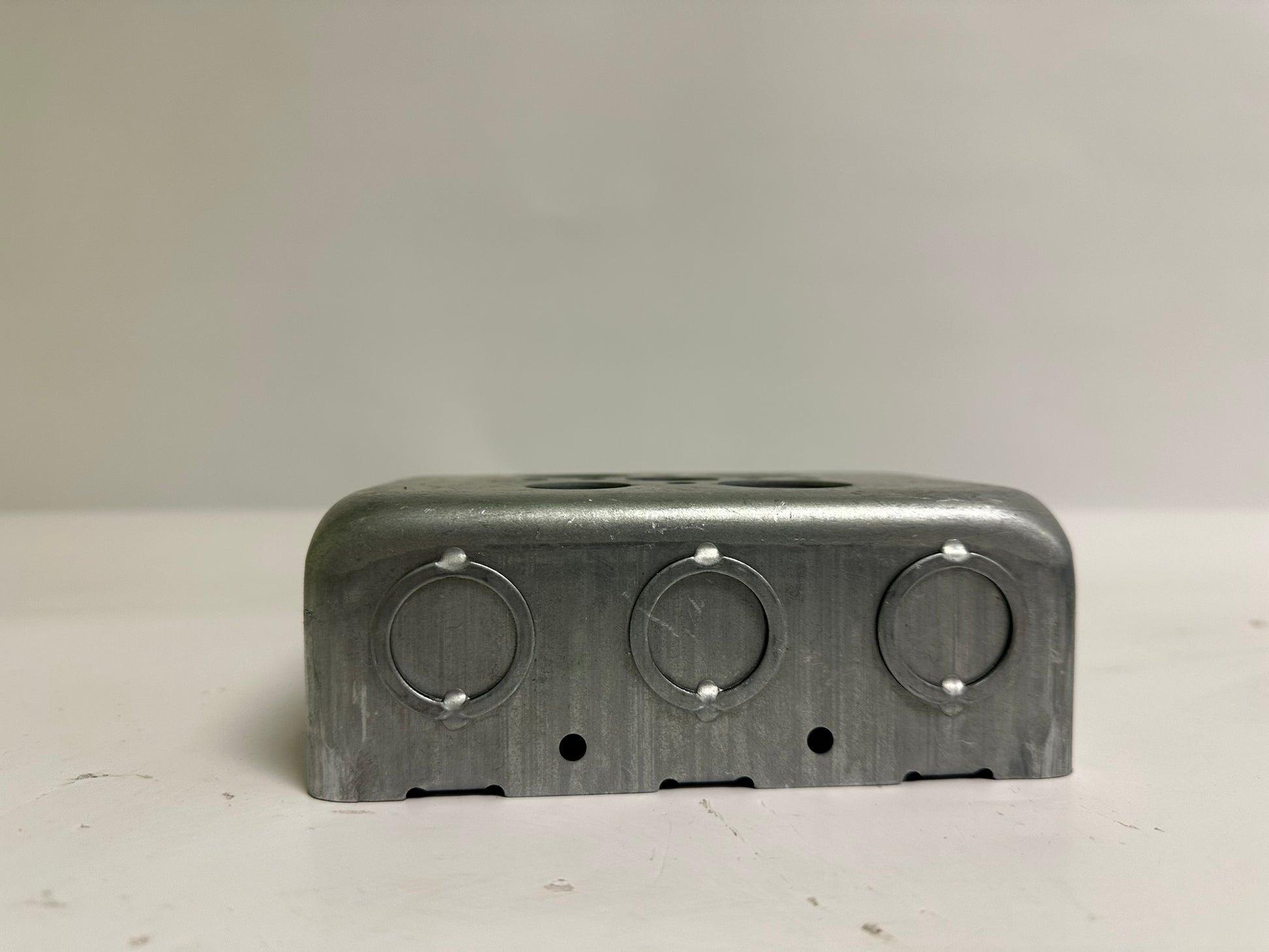 The Garvin MGSB-3 is a new, open three-gang multi-device switch box designed for housing multiple electrical devices like switches or outlets. Constructed from 0.0625-inch galvanized steel, it offers excellent durability and resistance to corrosion. The open design allows for easy access during installation, measuring 5.81" x 4.00" x 2.125" with a 44 cubic inch capacity. It features multiple knockouts on the sides and bottom for flexible conduit and cable entry. This box is UL/CUL listed and RoHS compliant, ensuring it meets safety and environmental standards. Ideal for both residential and commercial applications, the MGSB-3 supports secure and efficient electrical installations.