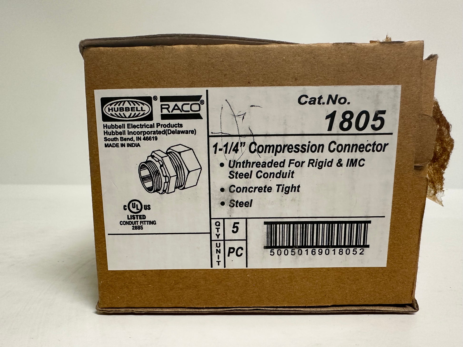 10 PK Raco (1805) 1 1/4" Compression No-Thread Conduit Connector, Steel