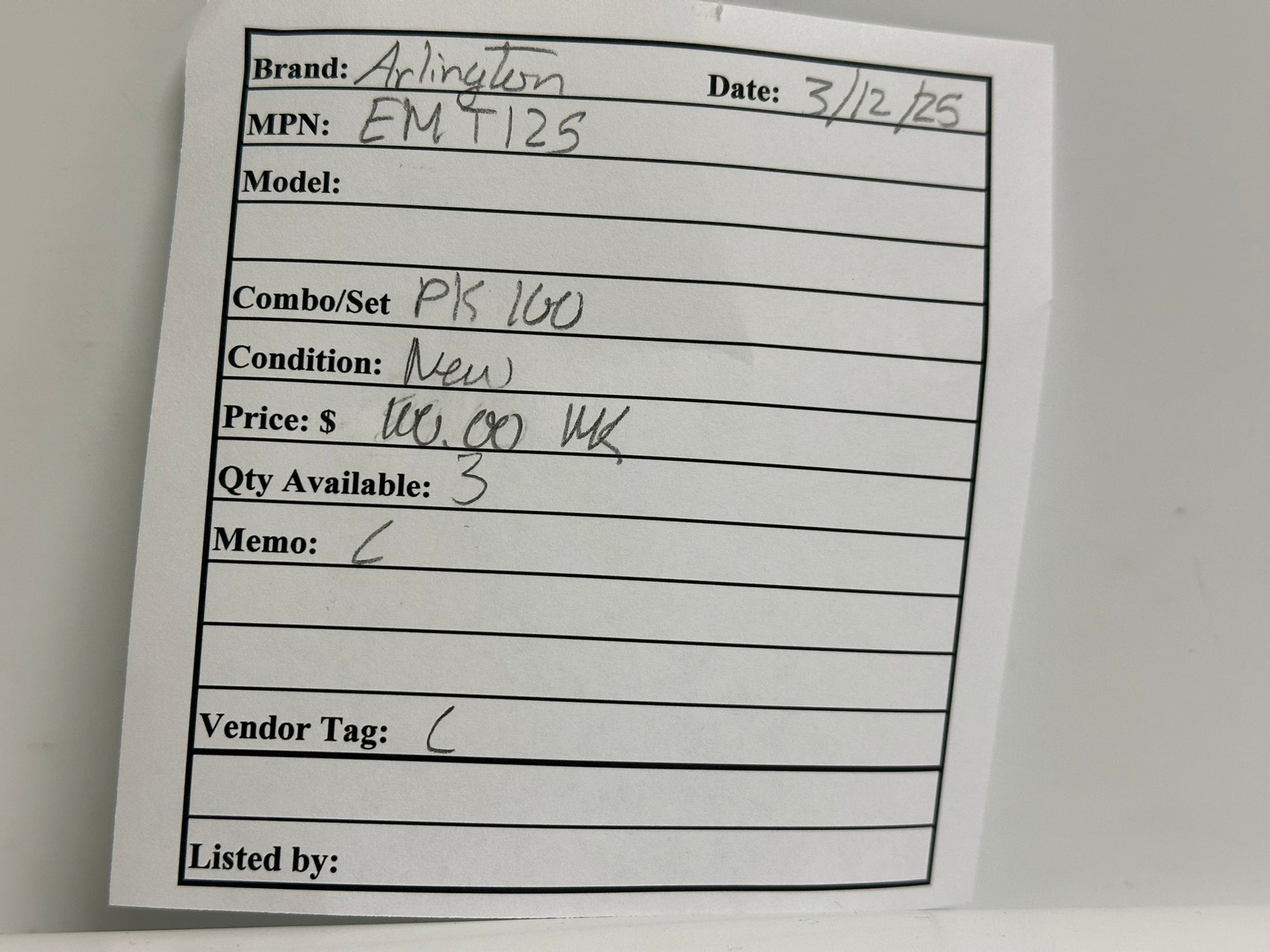 The 100 PK Arlington (EMT125) Push-On Non-Metallic Insulating Bushing is used to protect wires from damage when passing through AL/Steel EMT (Electrical Metallic Tubing) conduits. To use, simply push the bushing onto the cut end of the EMT conduit until it fits snugly, ensuring a secure and tight fit without the need for additional tools or fasteners. The bushing provides insulation, preventing wire abrasion against the sharp edges of the metal conduit. This is crucial for maintaining the integrity of the wire’s insulation and reducing the risk of electrical shorts. Ideal for residential, commercial, and industrial electrical installations, the bushing offers both protection and safety in various environments.