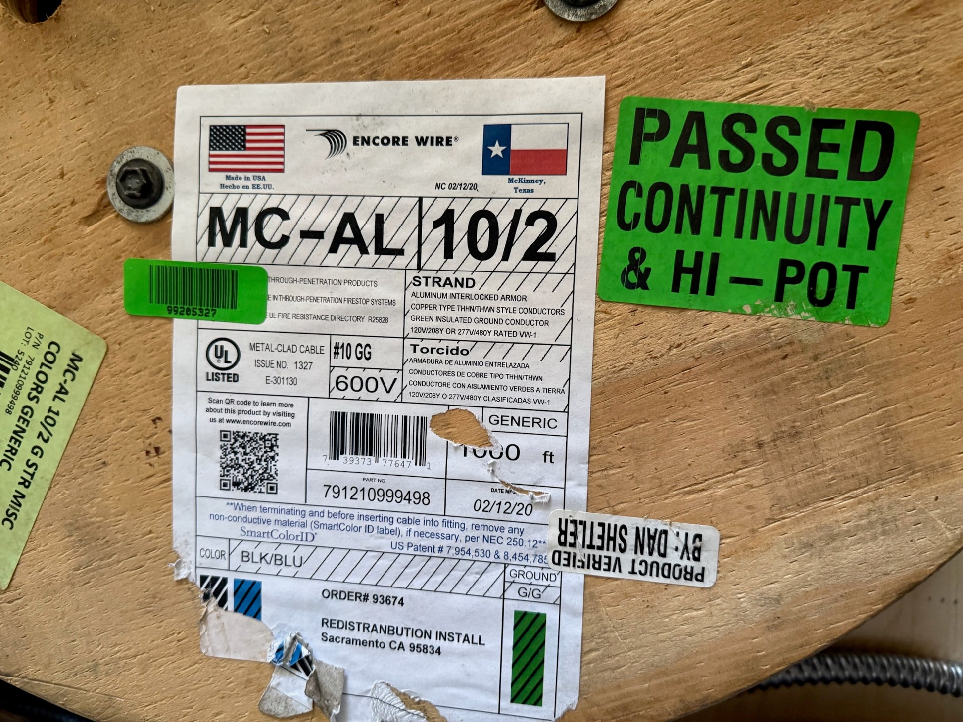1000 ft Aluminum MC-Cable 10/2 Strand Copper-Black, Blue Conductors (1000')