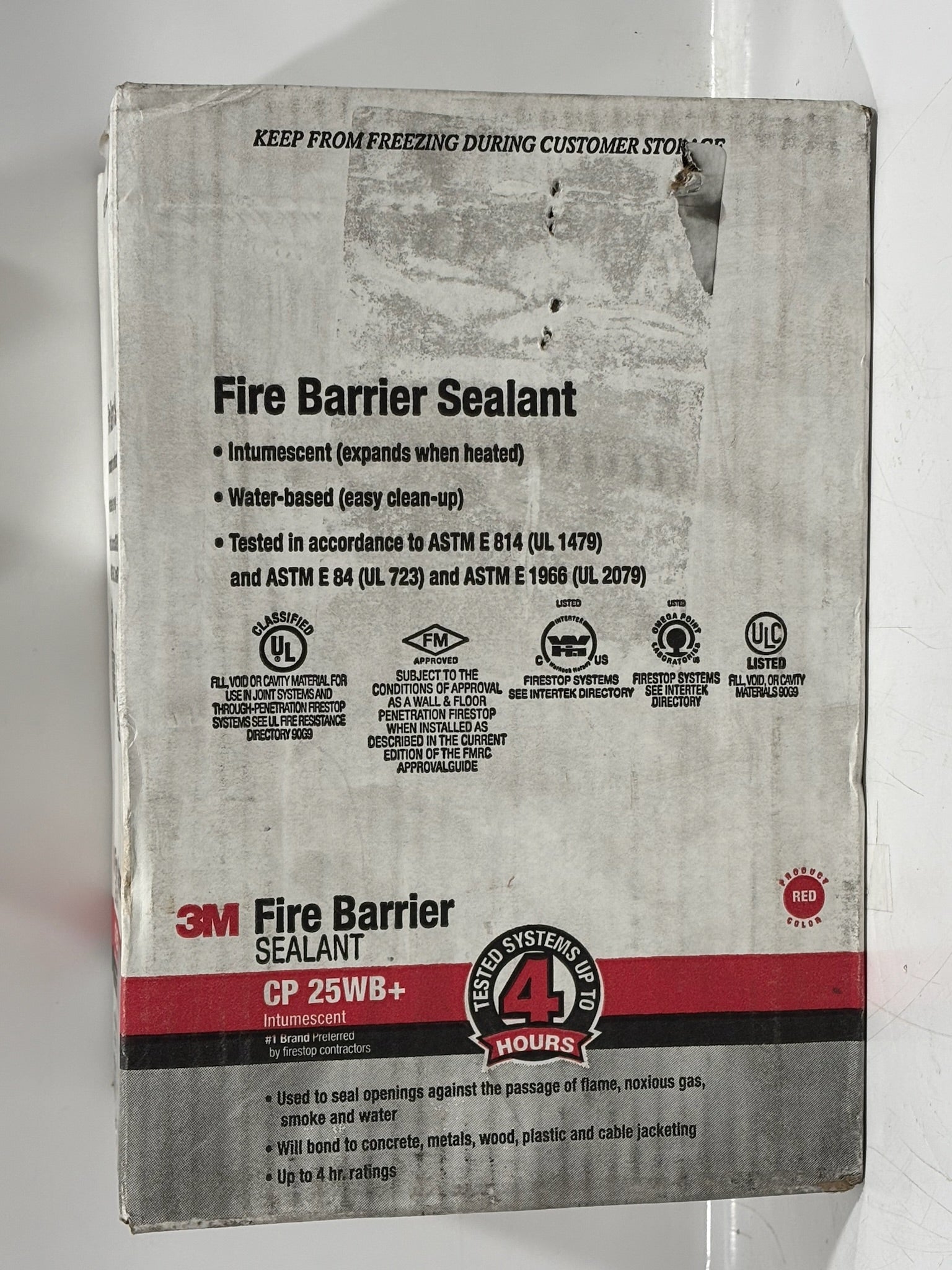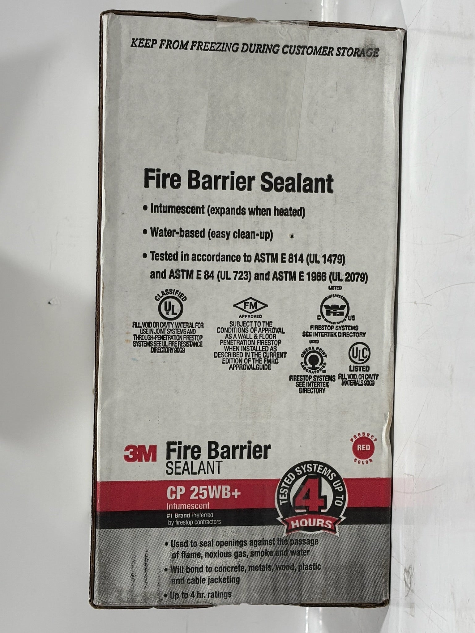 3M Fire Barrier Sealant CP 25WB+ is a water-based, intumescent sealant that expands when exposed to heat to provide up to 4 hours of fire protection. It is paintable, easy to apply, and adheres well to materials like concrete, metal, wood, and plastic. The sealant resists sagging and remains re-enterable for future repairs or modifications. It’s ideal for sealing penetrations in fire-rated walls, floors, and ceilings, helping to prevent the spread of fire and smoke. Additionally, it reduces sound transmission for enhanced acoustic performance.