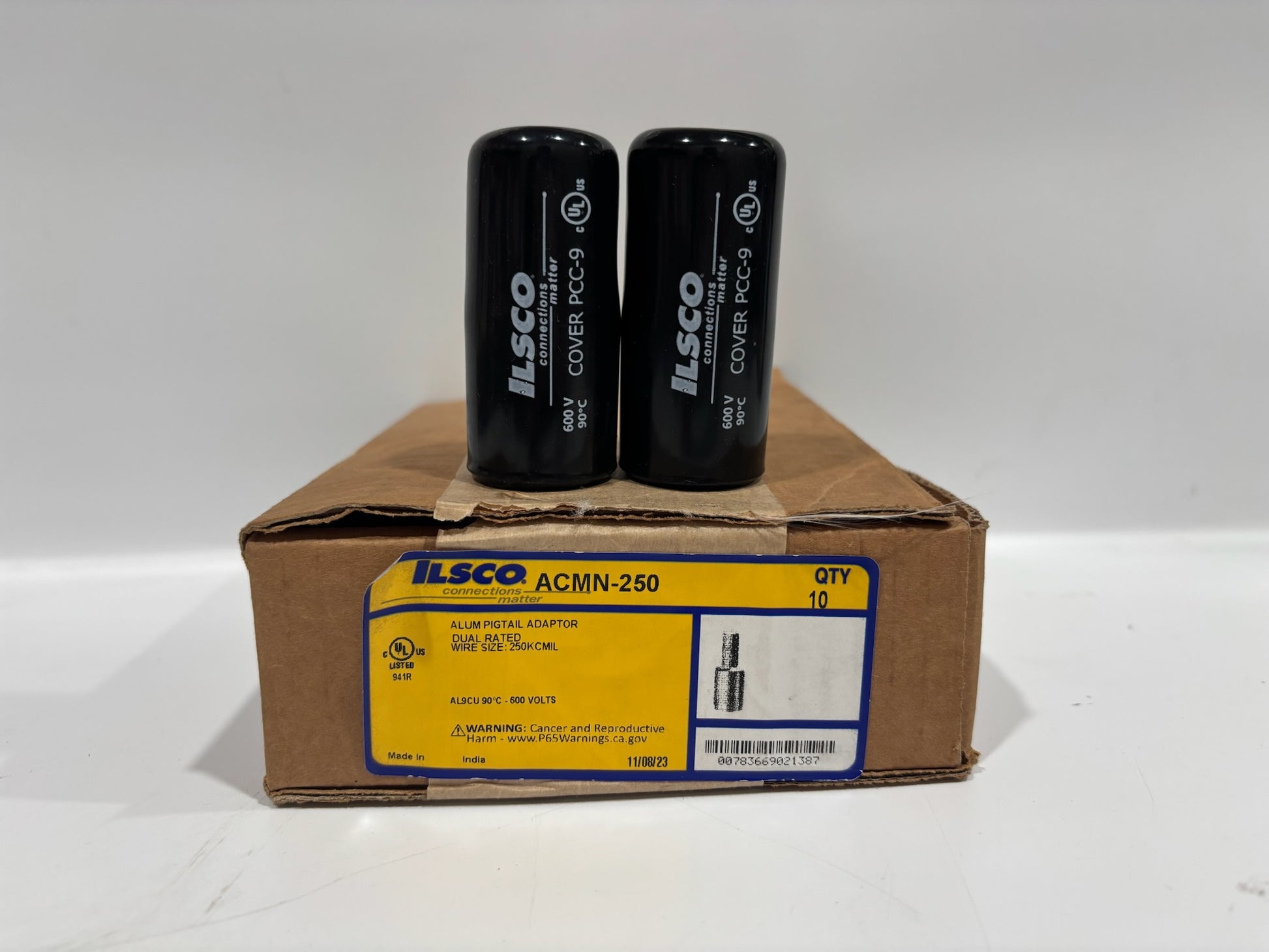 The ILSCO ACMN‑250 adapter is designed for 250 kcmil conductors, works for both aluminum and copper, and is dual‑rated to 600 V and 90 °C. It features a tin‑plated body, knurled pin, and pre‑filled DE‑OX compound to help ensure corrosion resistance and high conductivity. The color‑coded end cap and marked die index simplify tool selection and installation. Ideal for reliable terminations in power distribution and electrical infrastructure applications.