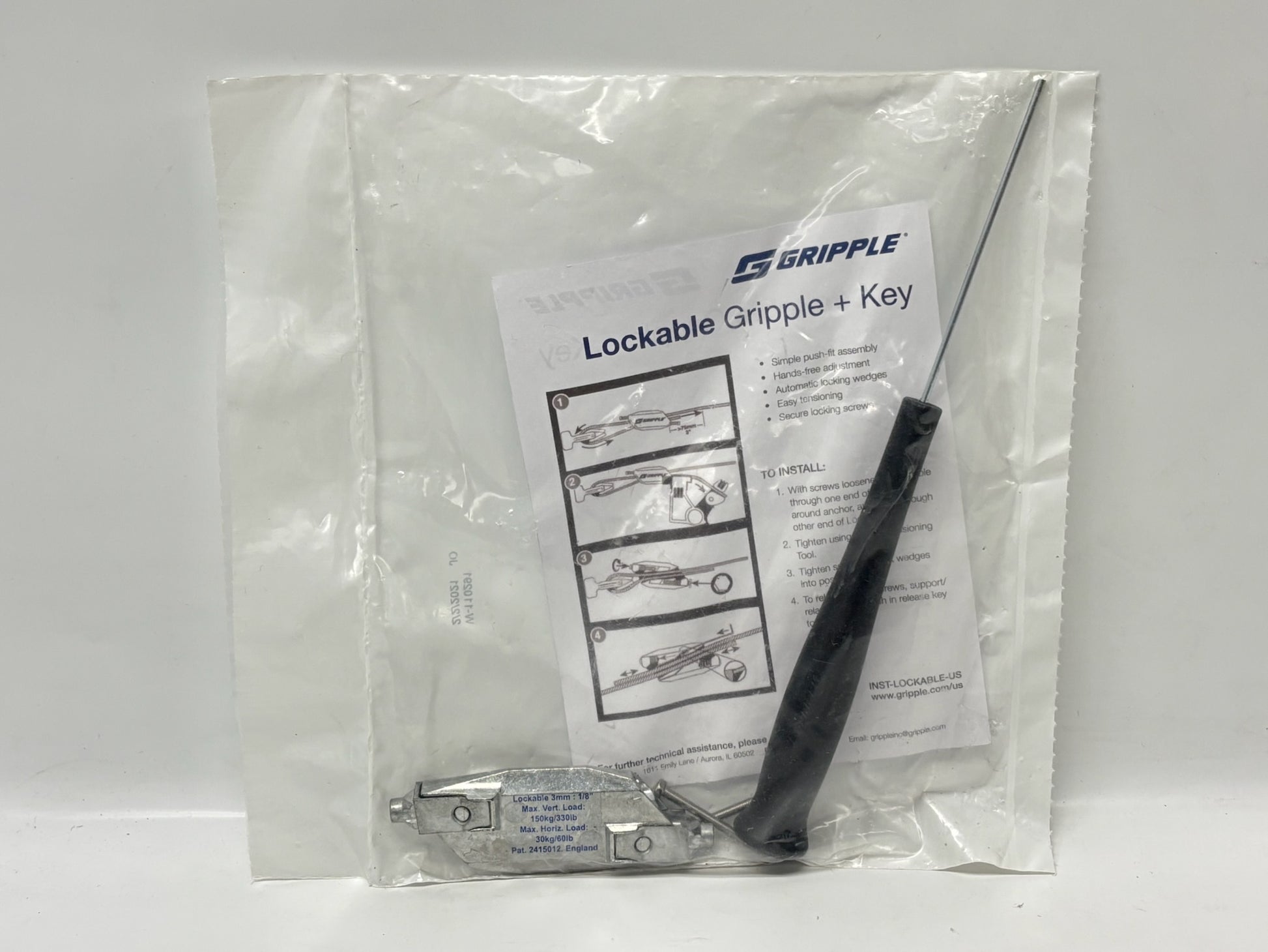 This Gripple Lockable Hanger is designed for rigid, one-time use cable termination in high-load bracing and suspension applications. It features locking screws that secure the internal wedge firmly, preventing slippage of the rope under tension. With a specified working load limit and standard factory 4:1 or 5:1 safety factor, it supports heavy installations and simplifies field work. Select the correct cable diameter variant to ensure full performance and longevity.