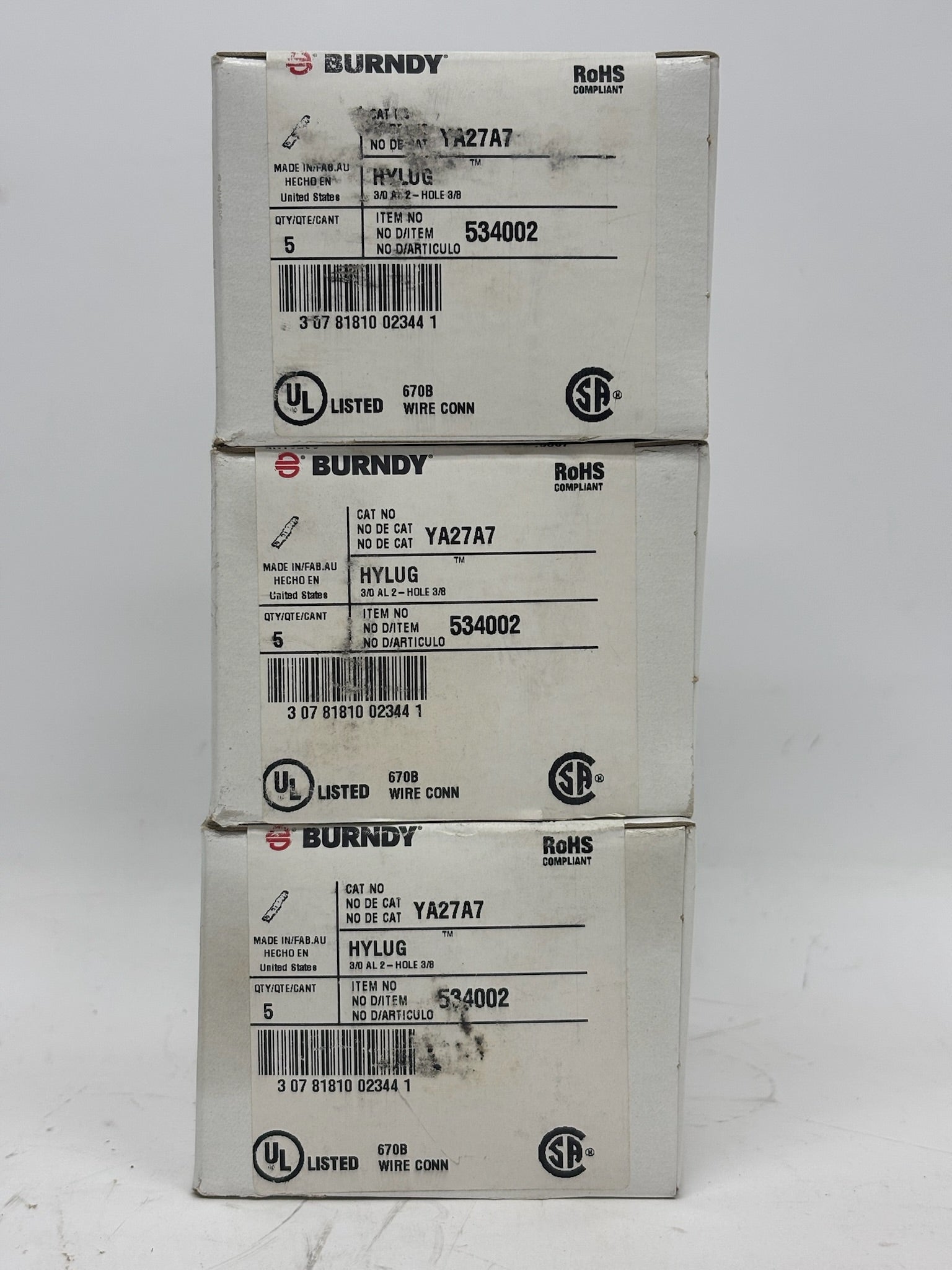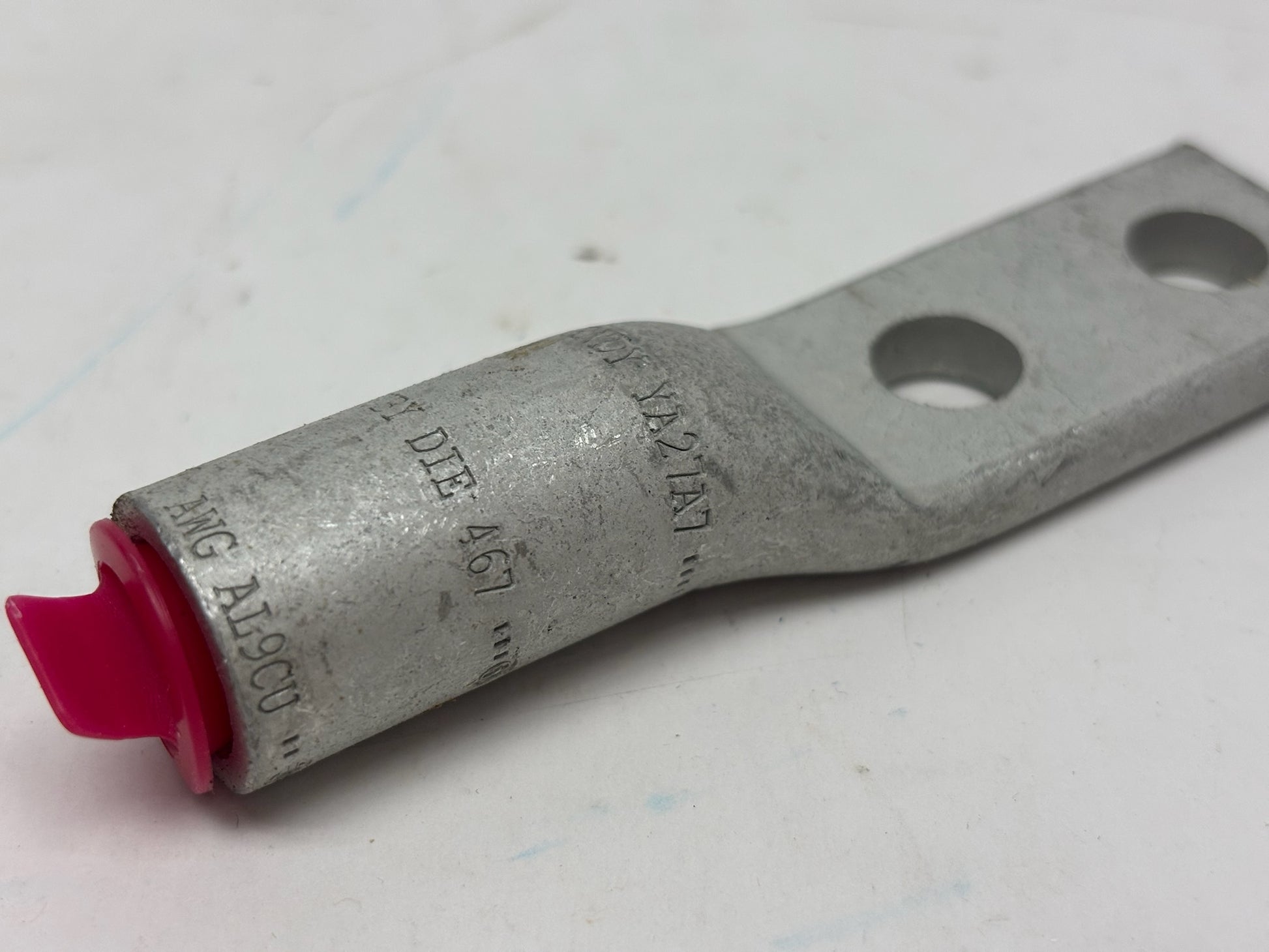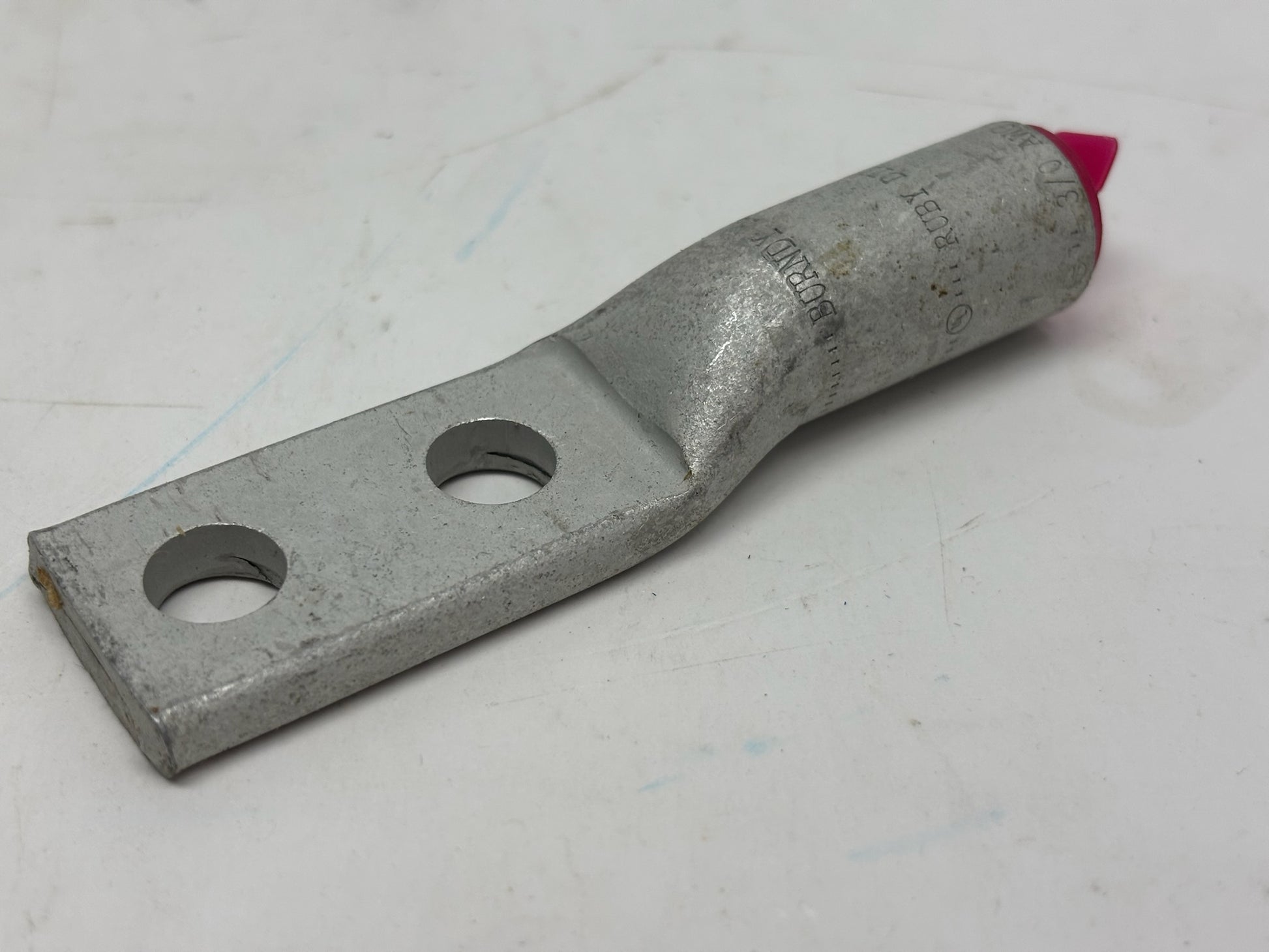 The Burndy YA27A7 is a 2-hole compression lug designed for terminating 3/0 AWG copper or aluminum conductors. Made from tin-plated wrought aluminum, it offers excellent conductivity and corrosion resistance. The lug features 3/8-inch stud holes spaced 1 inch apart, with a chamfered barrel for easy conductor insertion and reduced strand damage. Pre-filled with PENETROX™ oxide inhibitor and capped for protection, it ensures long-lasting, low-resistance connections. UL Listed and CSA Certified, this lug is ideal for industrial, commercial, and utility applications requiring reliable electrical terminations.