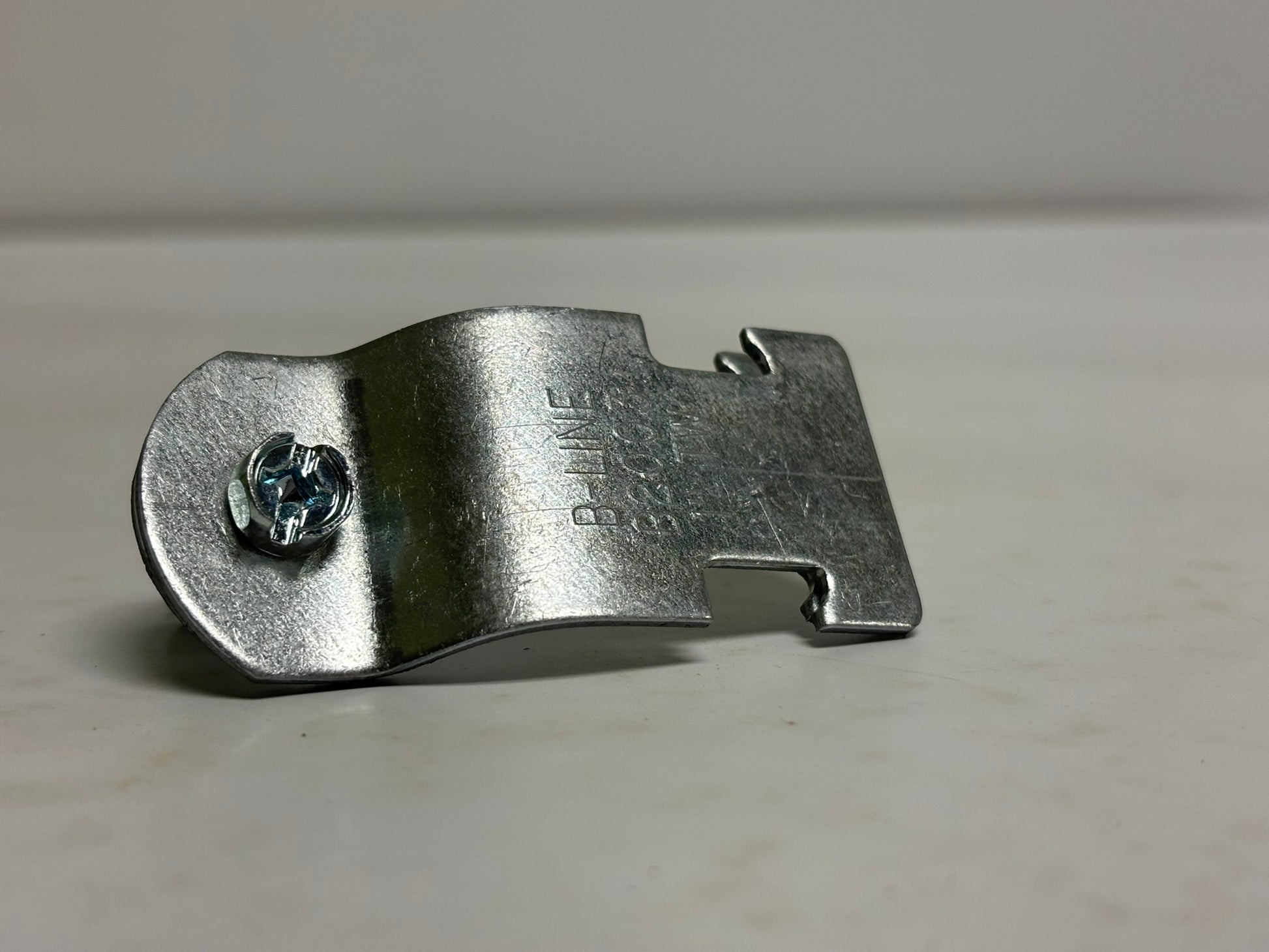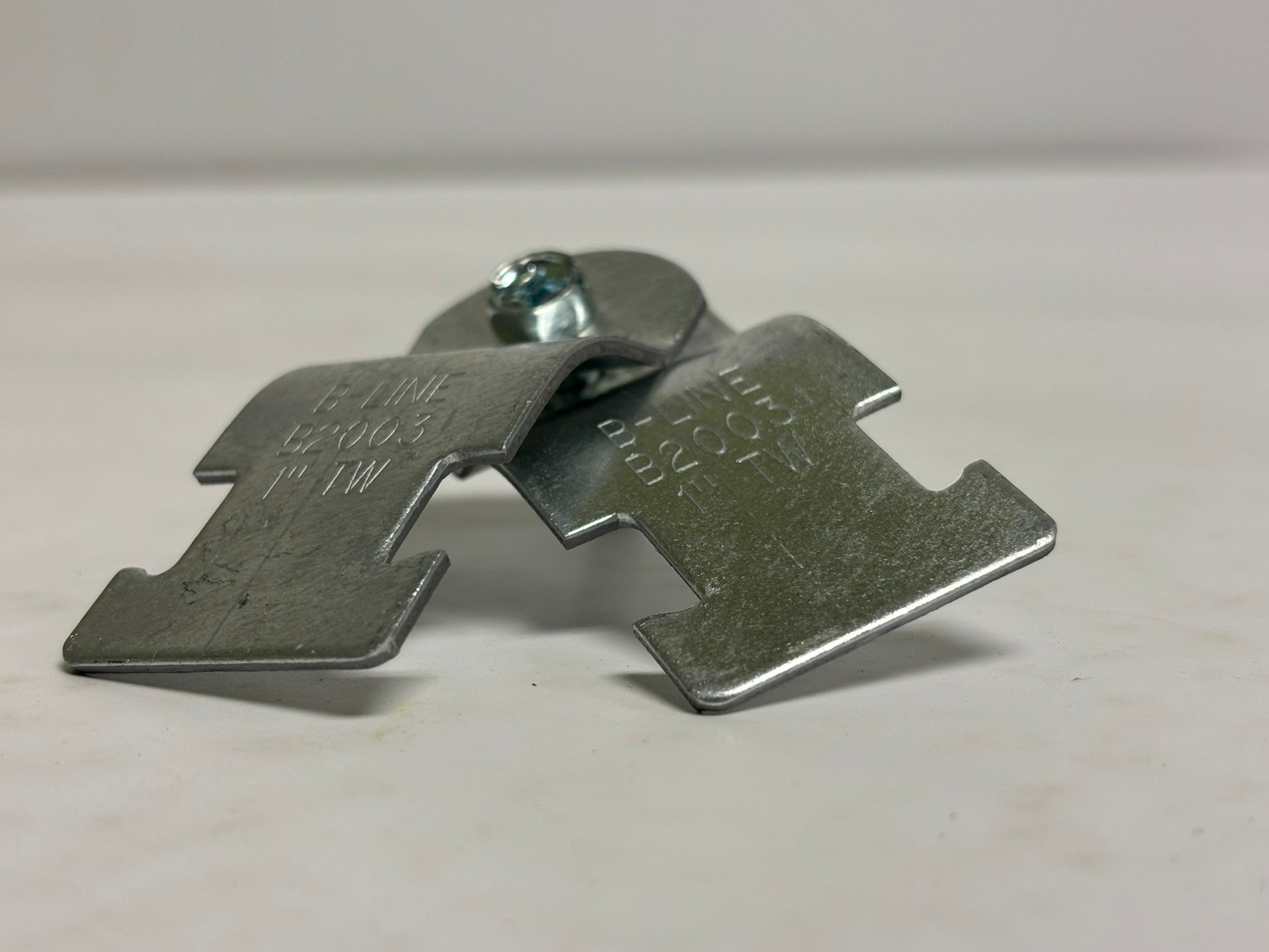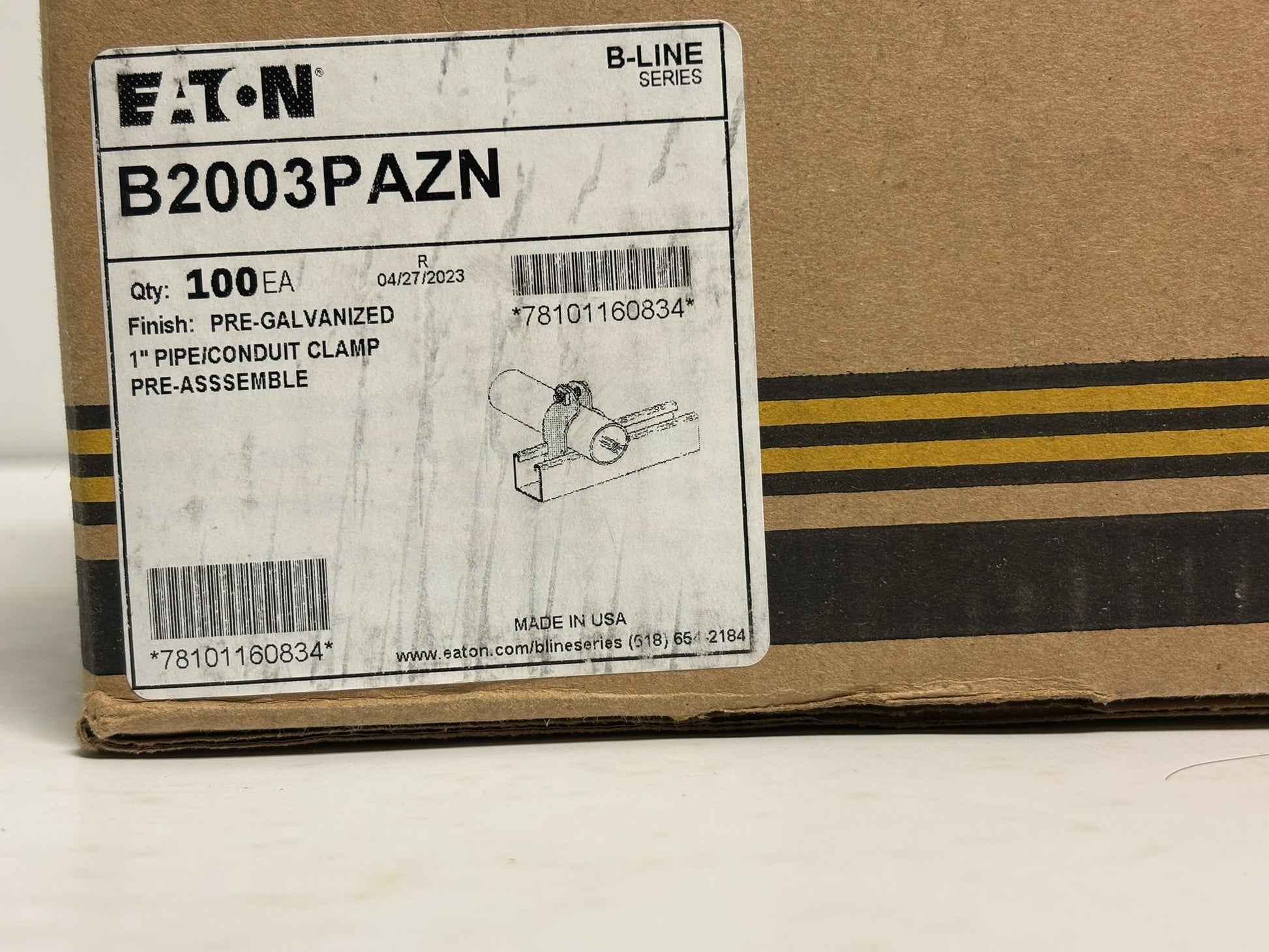 The Eaton B2003PAZN is a 1-inch EMT conduit-to-strut clamp designed for secure conduit mounting in commercial and institutional settings. Made from 14-gauge low-carbon steel with a zinc-plated finish, it offers durability and corrosion resistance. Its two-piece construction includes a combination hex head screw and square nut for quick installation. This clamp is ideal for attaching EMT conduit to standard strut channels with a strong, reliable hold.
