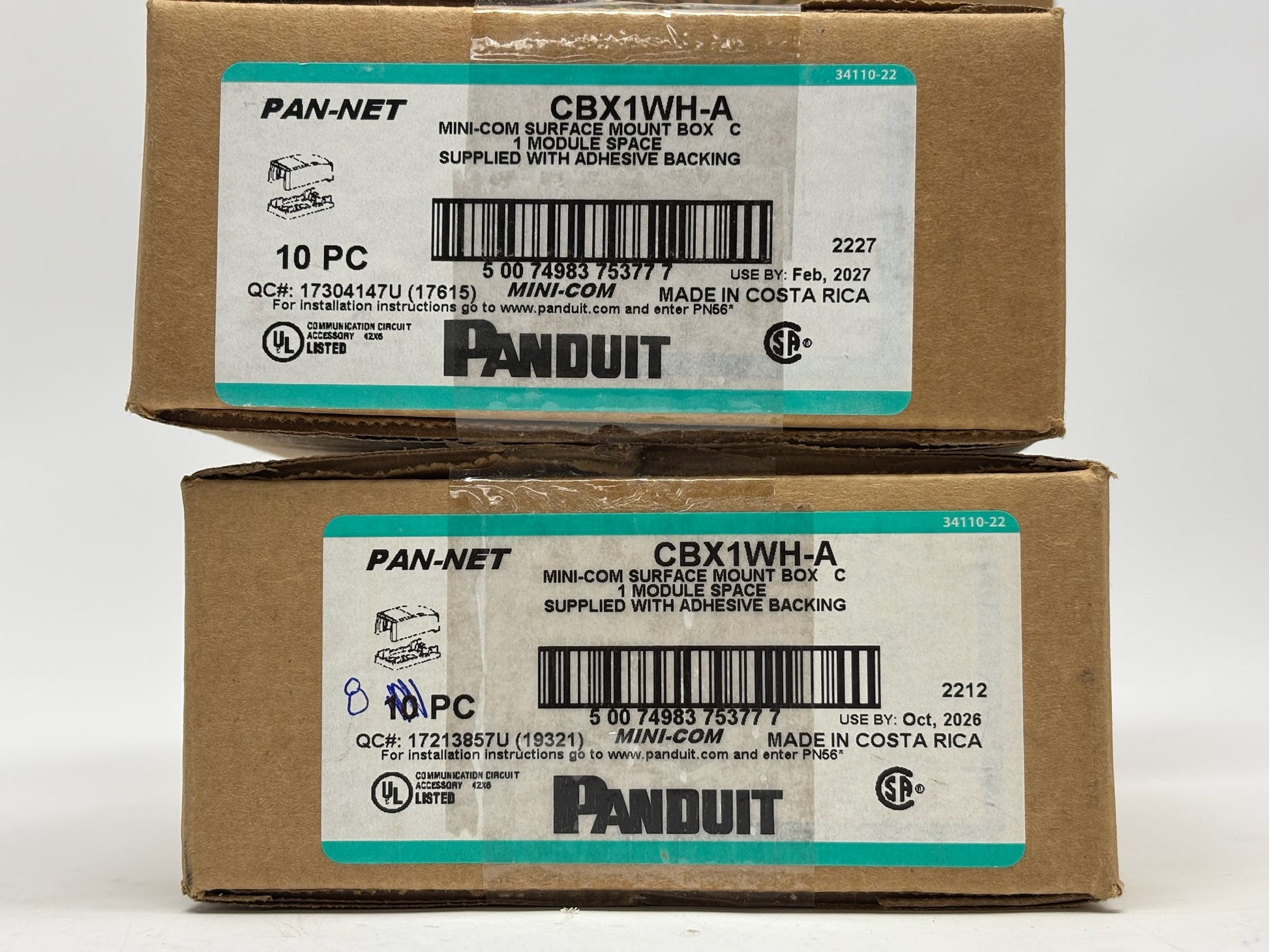 The Panduit CBX1WH-A is a compact, plenum-rated 1-port surface mount box designed for use with Mini-Com® modules. It features a low-profile white ABS housing with multiple cable entry points (side, rear, and bottom) for flexible installations. The box includes adhesive tape and screw options for secure mounting, and its quick-release cover allows easy access for module changes. UL 2043 and UL 1863 compliant, it is suitable for use in air-handling spaces such as drop ceilings or raised floors. Ideal for voice, data, and video applications in office, commercial, or educational environments.
