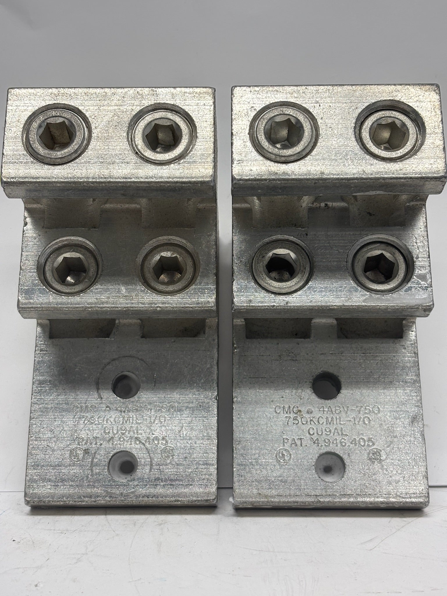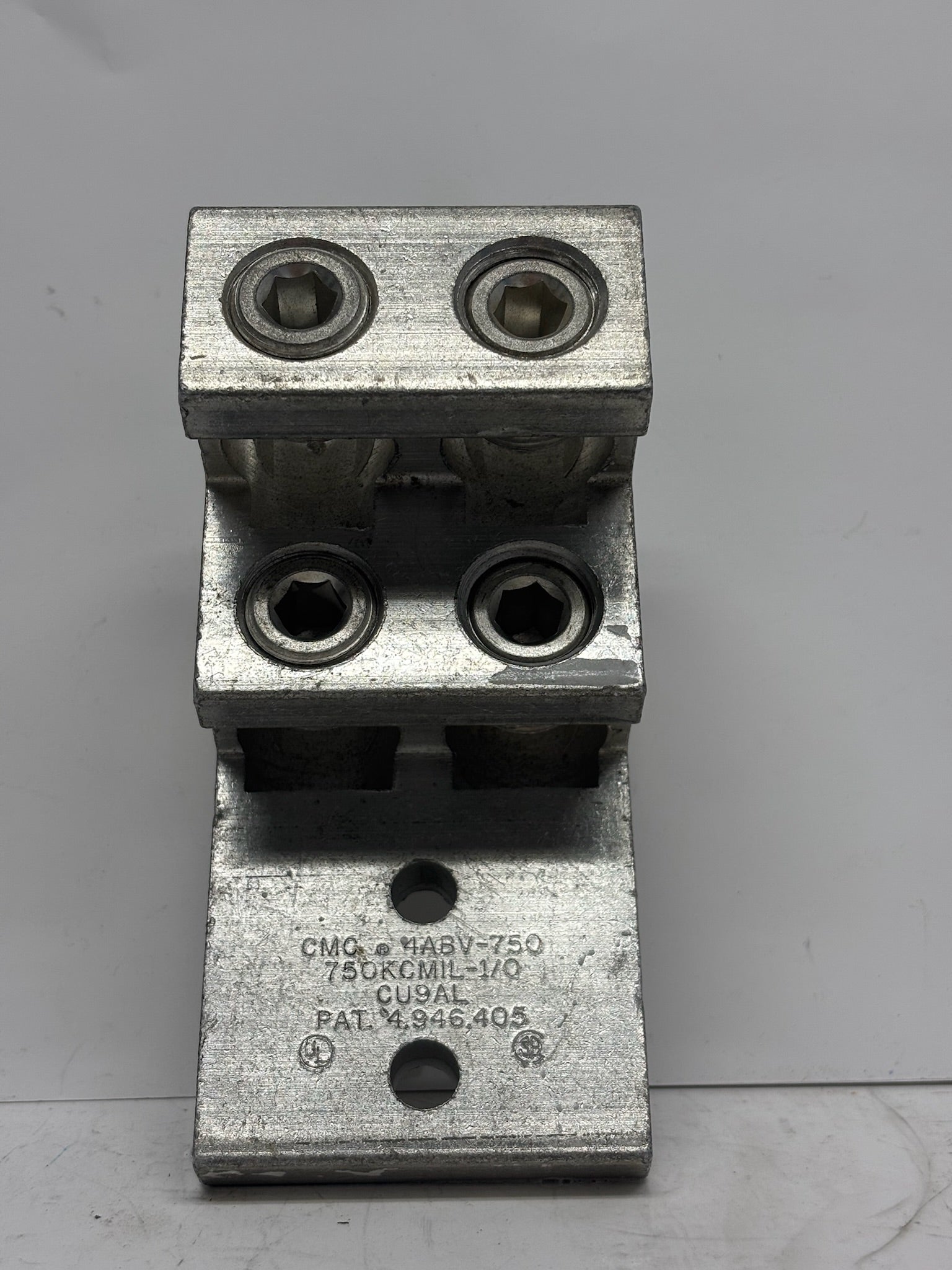 The CMC 4ABV-750 is a heavy-duty aluminum mechanical lug connector designed for secure termination of large conductors. Featuring a 4-hole design for improved stability and conductivity, this connector is tin-plated for corrosion resistance and long-lasting performance. Ideal for power distribution panels, switchgear, and industrial electrical applications. Sold here as a 2-pack for convenience in bulk installations.