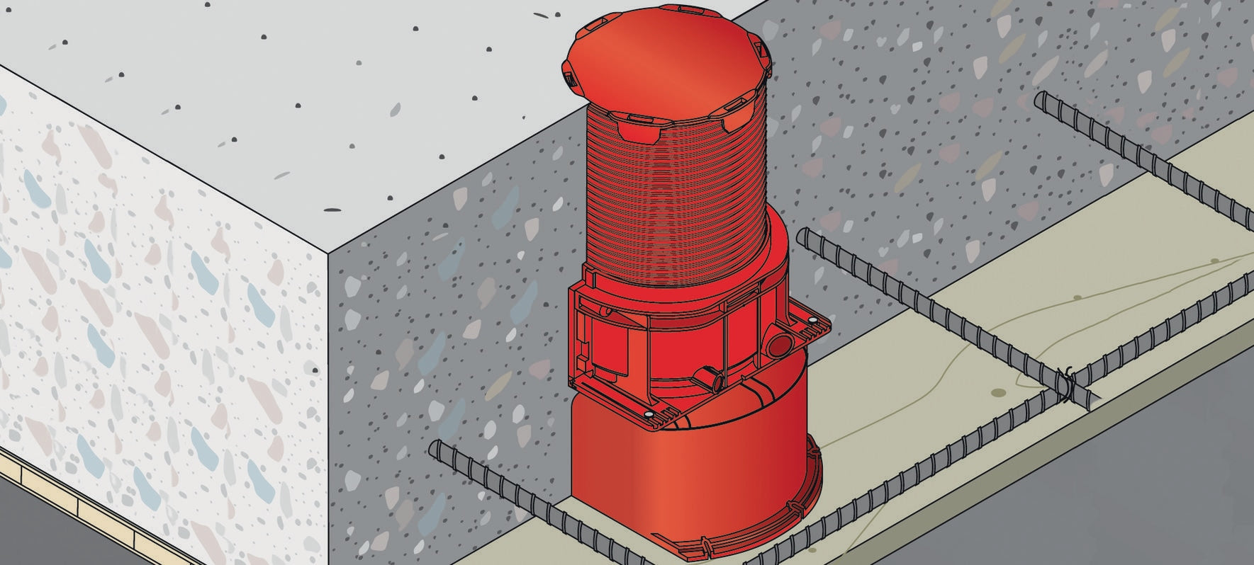 One-step firestop cast-in sleeve for plastic pipe penetrations through floors. Place it and forget it