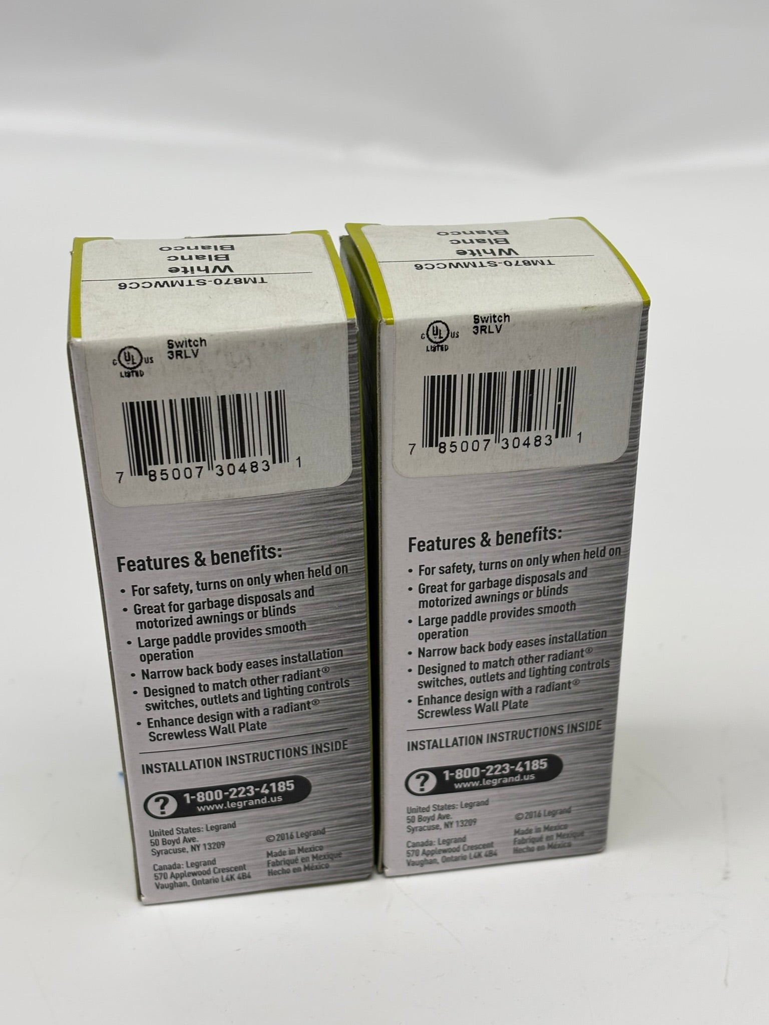 2 Pack Legrand TM870-STMWCC6 radiant Momentary Contact Switch