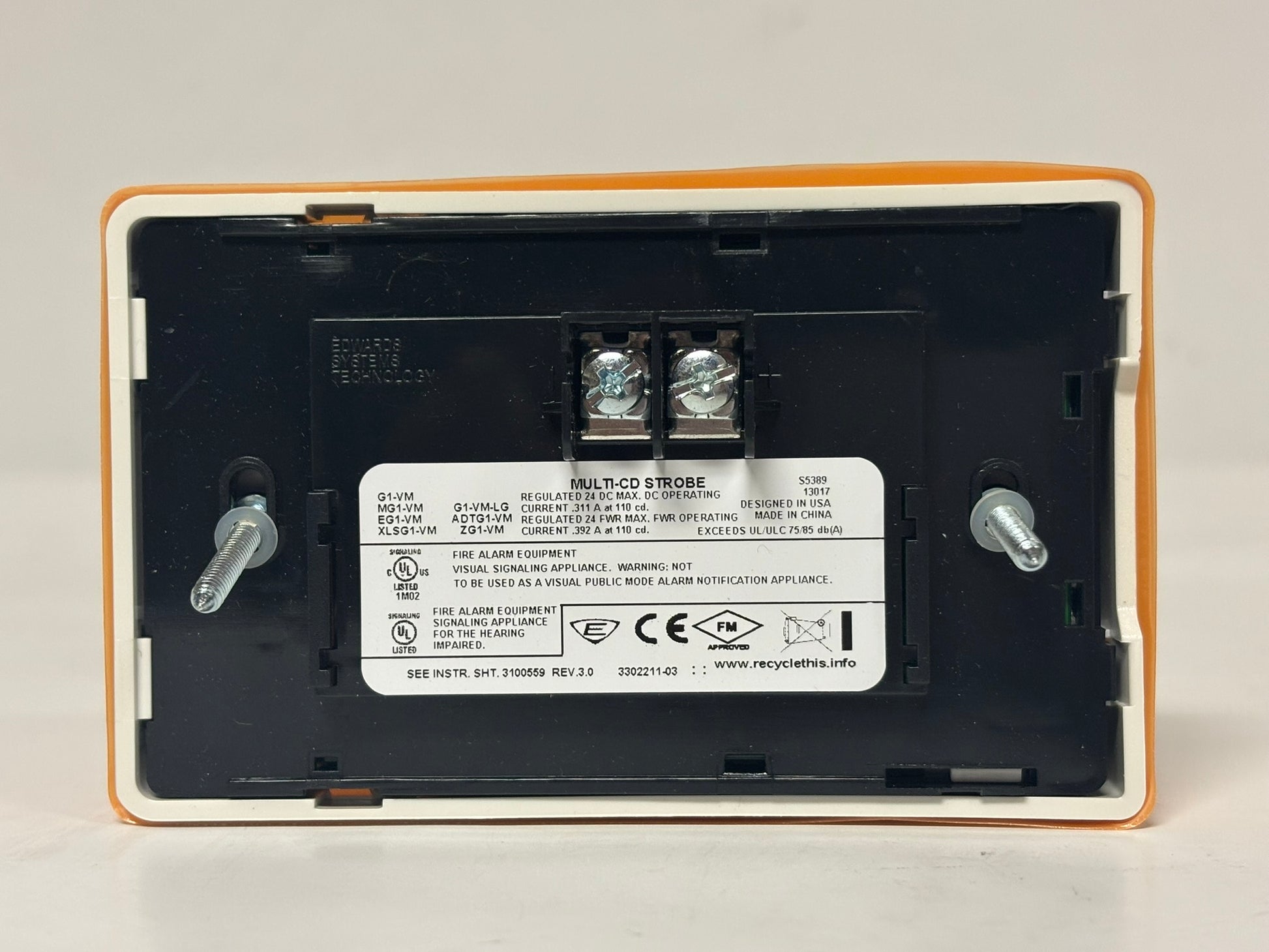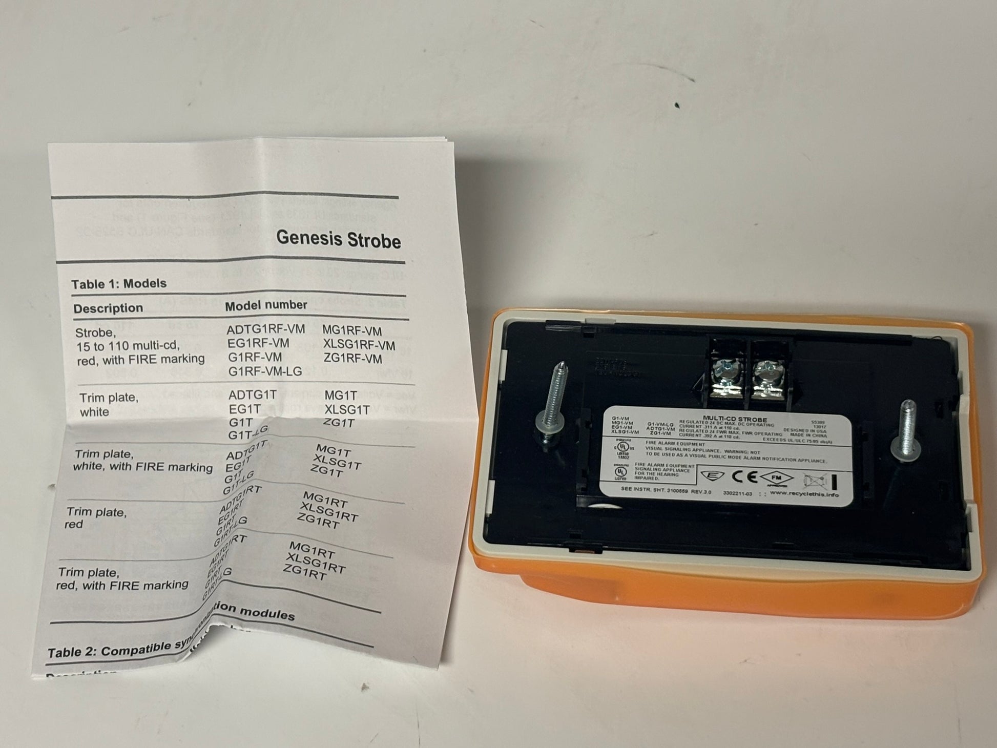 The EST Genesis G1-VM Multi CD Strobe Scope is a reliable signaling device designed to provide clear visual alerts in emergency situations. Operating at 24 VDC/CC, it ensures high-intensity illumination, making it ideal for a variety of commercial and industrial applications. The unit features a durable, white/blanc housing that allows for easy integration into different environments, while its multi-CD strobe design delivers superior visibility.