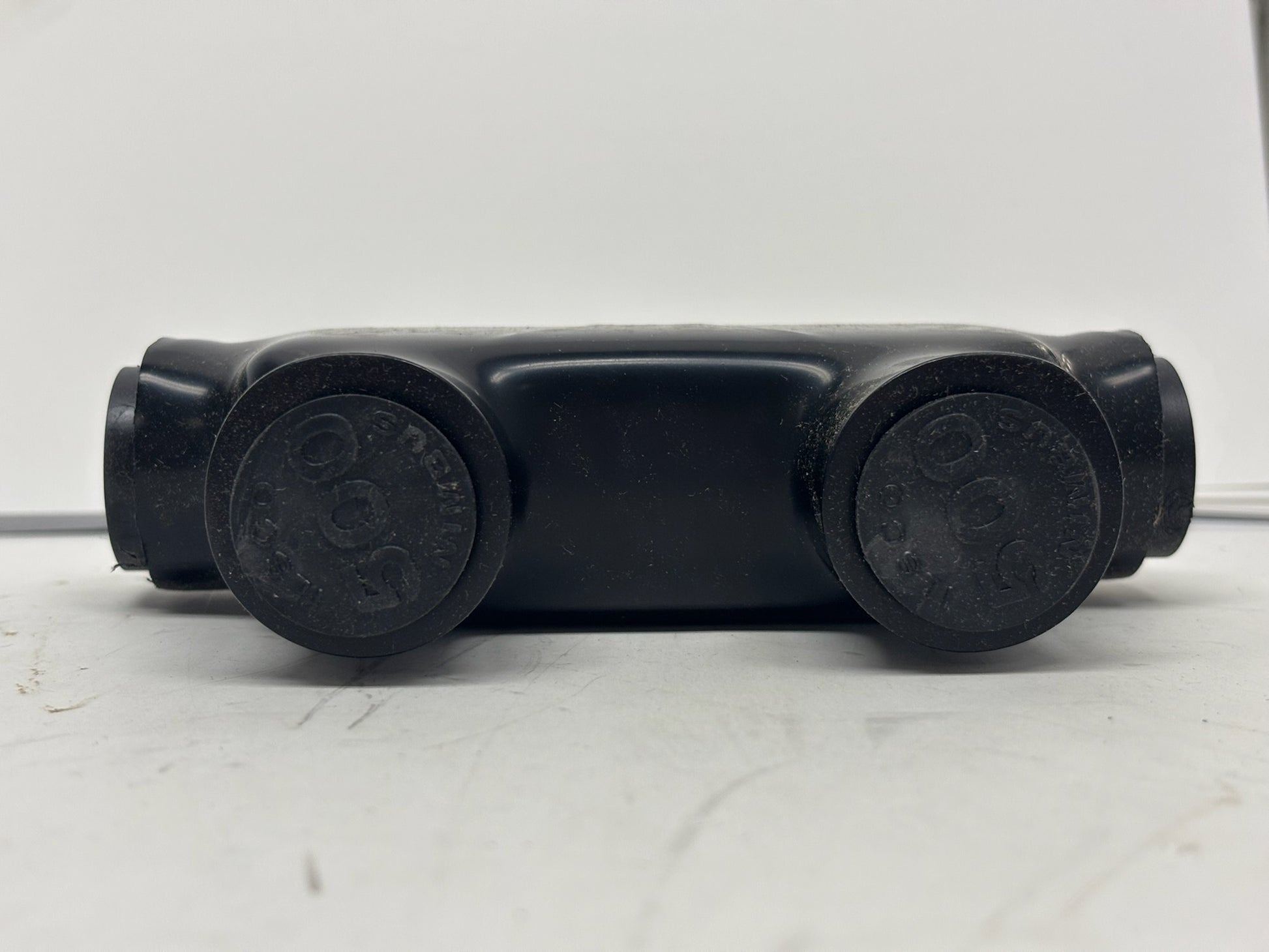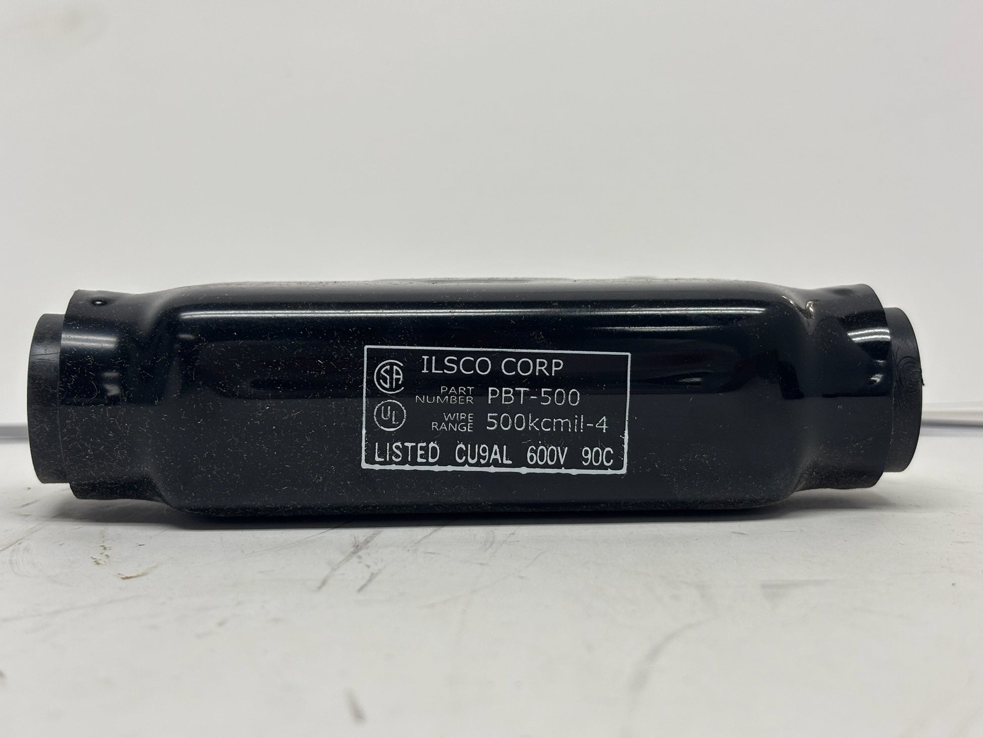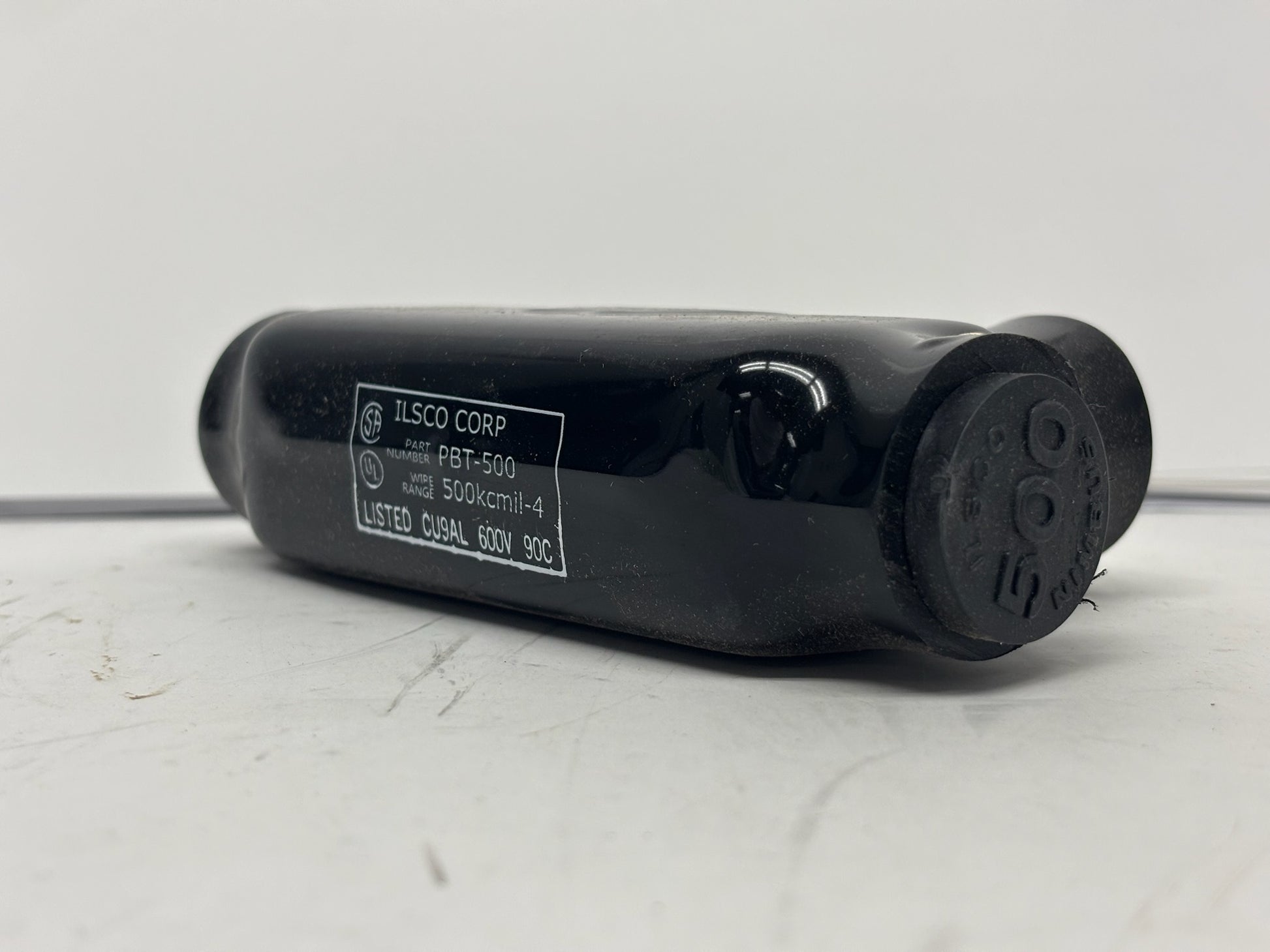 The Ilsco PBT-500 is a dual-rated insulated in-line splicer/reducer designed for use with copper or aluminum conductors ranging from 4 AWG to 500 kcmil. Rated for 600 VAC and up to 430 amps, it provides a secure, low-resistance connection with a durable aluminum body encased in UV-resistant plastisol insulation. The connector comes pre-filled with DE-OX® oxide inhibitor and includes removable plugs for easy installation. UL and CSA approved, it is built to perform reliably in demanding indoor or outdoor electrical applications.