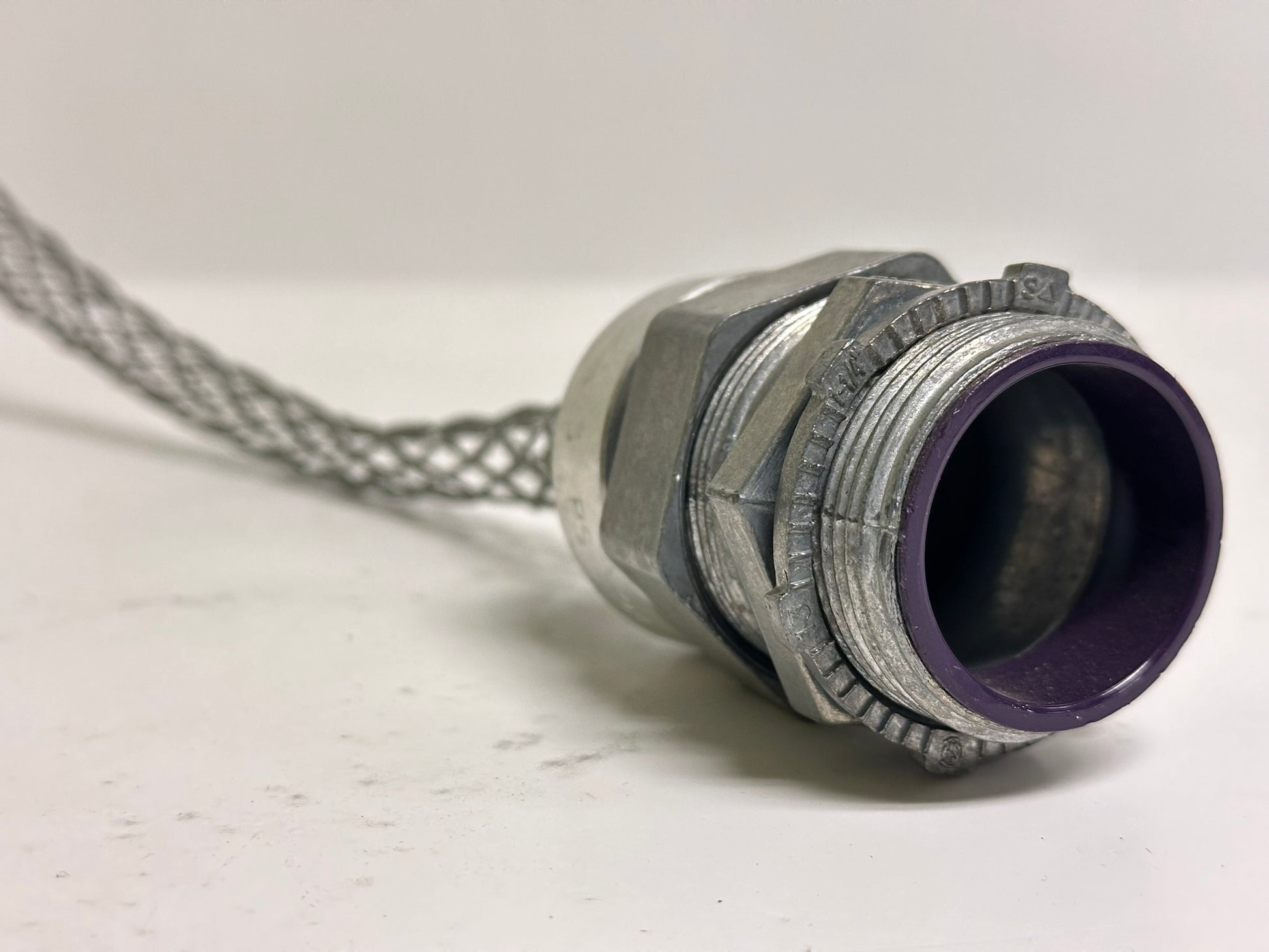 The Legrand Pass & Seymour BOX94 is a dust-tight strain relief grip designed to provide secure and reliable connections in industrial electrical applications. It features a 1-1/4" NPT straight male connection and accommodates cable diameters ranging from 0.94" to 1.25". Constructed from zinc-plated steel, this grip offers a 700 lb breaking strength, ensuring durability and resistance to mechanical stress. An insulated bushing is included to protect conductors from abrasion and to maintain electrical integrity. Ideal for use in wiring enclosures, power boxes, machine tools, and power centers, the BOX94 is UL and CSA listed, meeting stringent safety standards