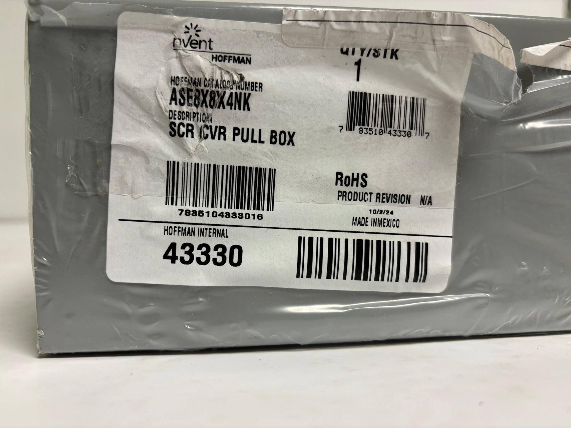 The nVent Hoffman ASE8X8X4NK is a durable 8"x8"x4" pull box designed for indoor electrical applications. Made from powder-coated mild steel, it features a screw cover with keyhole slots for easy access and installation. This NEMA Type 1 enclosure provides basic protection against contact with enclosed equipment. It’s ideal for housing wire connections in commercial and industrial settings.