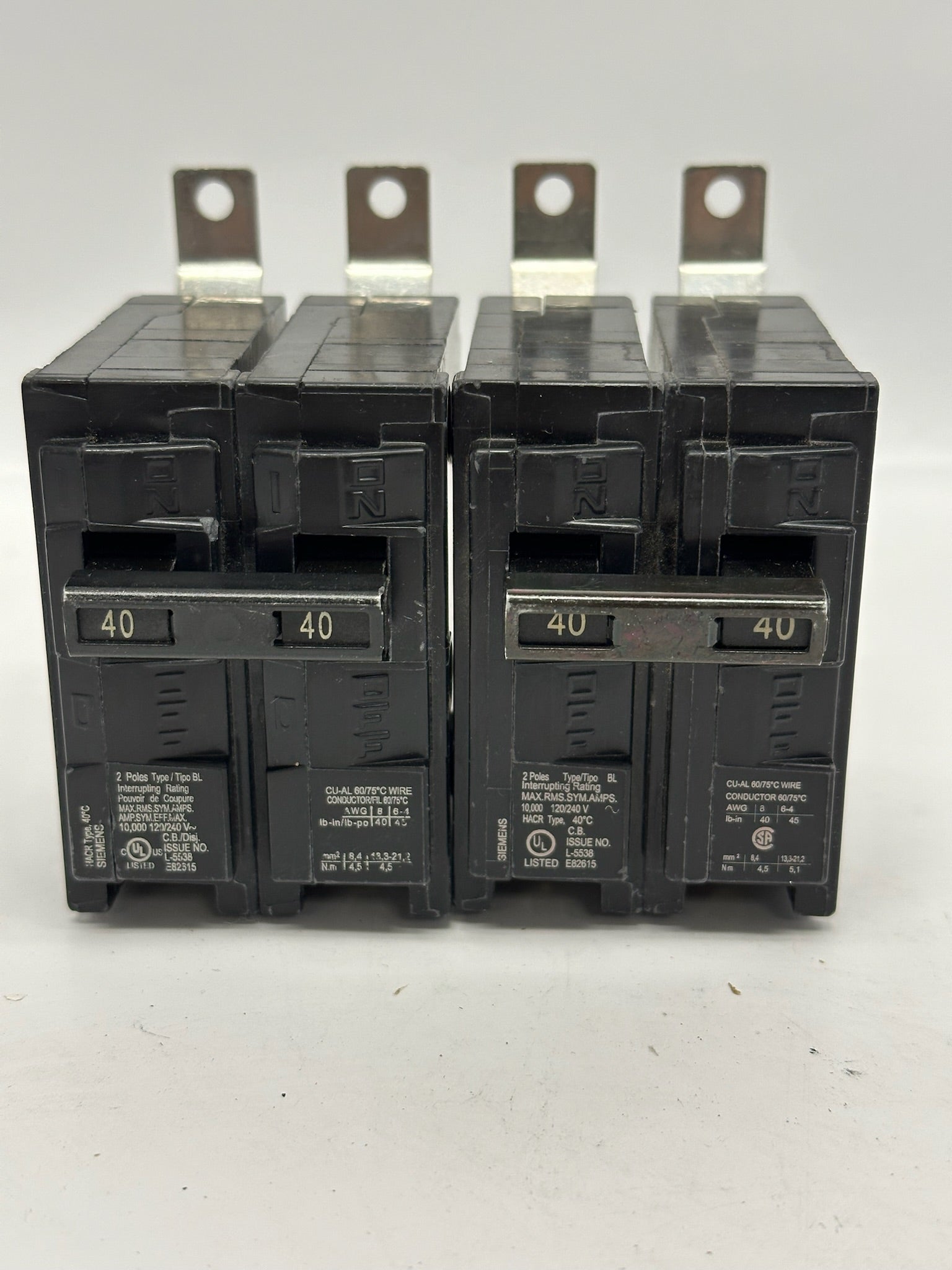 2 PK Siemens B240 40 A 120/240 V 2‑Pole Type BL Molded Case Circuit Breakers