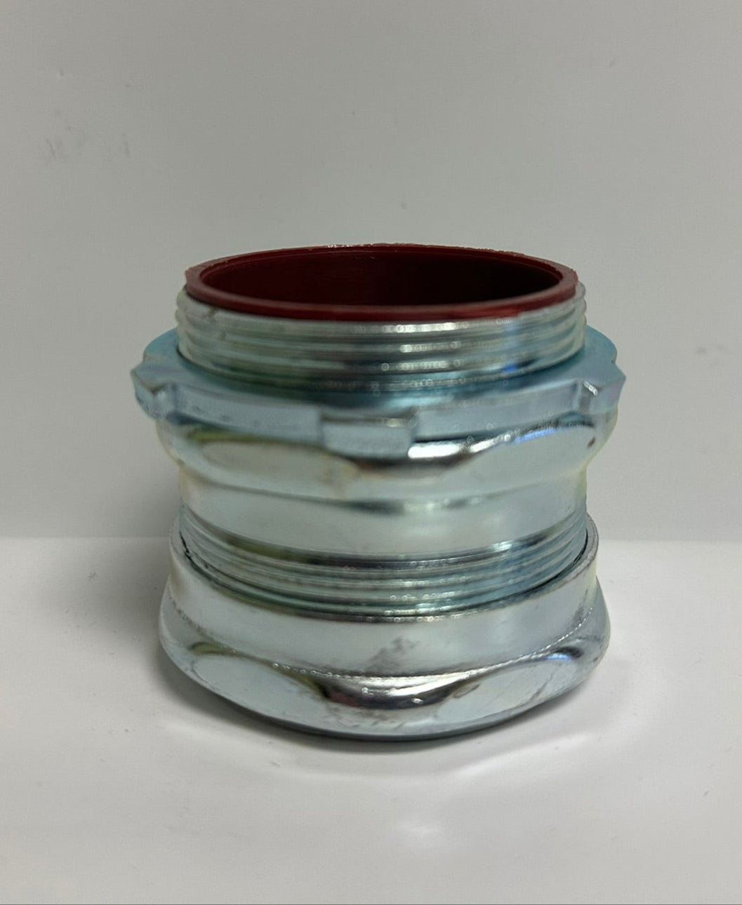 The Thomas & Betts TC716A is a new, 2-inch, insulated compression connector designed for use with EMT (Electrical Metallic Tubing) conduit. Constructed from zinc-plated steel, it offers durability and resistance to corrosion, ensuring long-lasting performance. The connector features an insulated throat, providing protection against electrical shorts and enhancing safety during installation. Its compression design ensures a secure and reliable connection between the conduit and electrical enclosures. The TC716A is UL Listed, meeting recognized safety and performance standards. This connector is ideal for both commercial and residential electrical applications, offering a dependable solution for conduit connections.