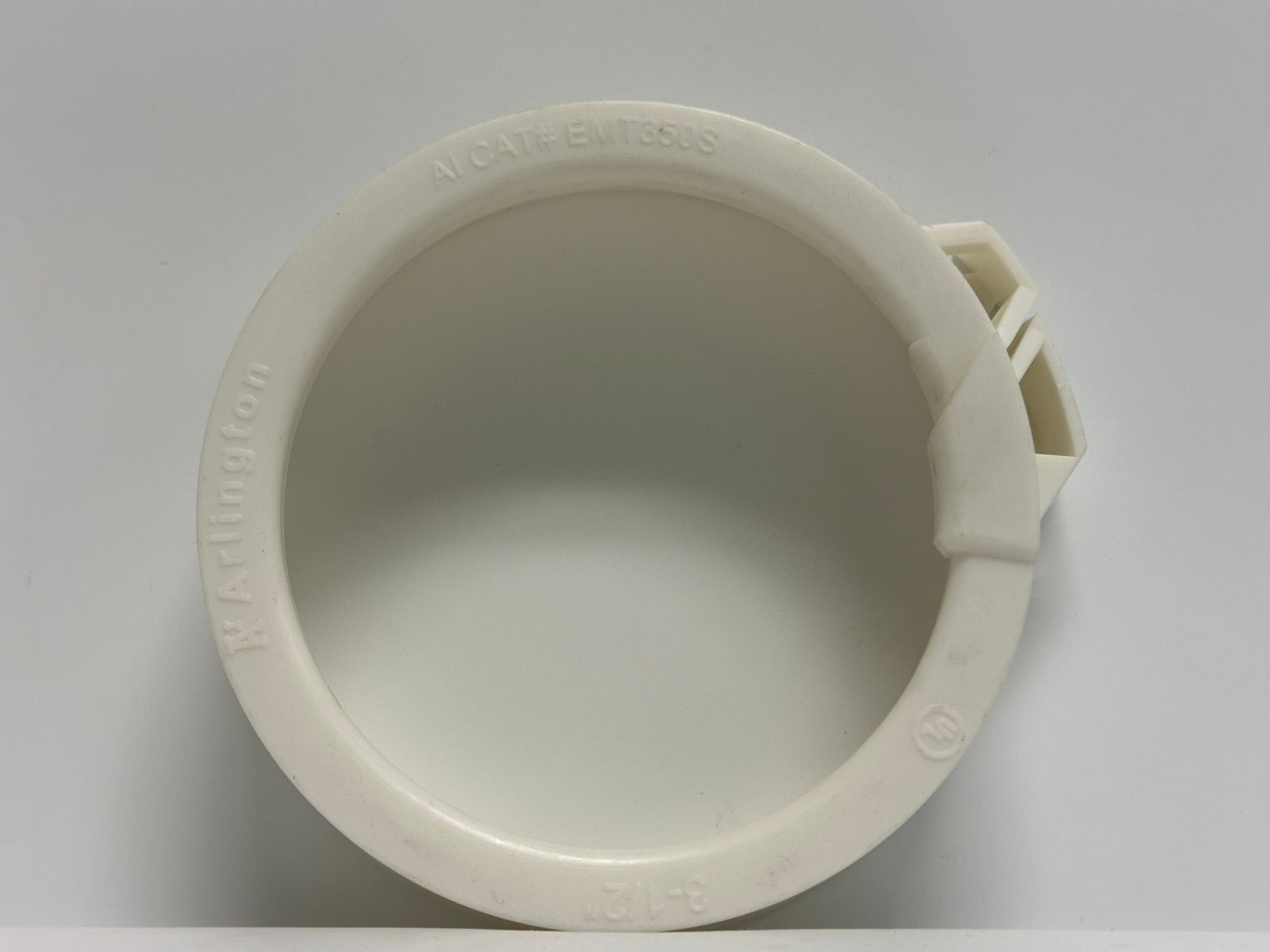 The Arlington EMT350S 3 1/2" Insulated EMT Split Bushing is used to protect electrical conduit from damage caused by sharp edges where the conduit enters a box or other electrical device. To use, simply slide the split bushing over the end of the EMT conduit before inserting it into the knockout opening of the box or device. The insulation on the bushing helps to prevent abrasion and ensures a secure fit between the conduit and the box. The split design makes installation easier, as it can be snapped into place without the need for additional tools or hardware. This bushing is ideal for maintaining the integrity of the wiring system and providing extra protection in both residential and industrial electrical installations.