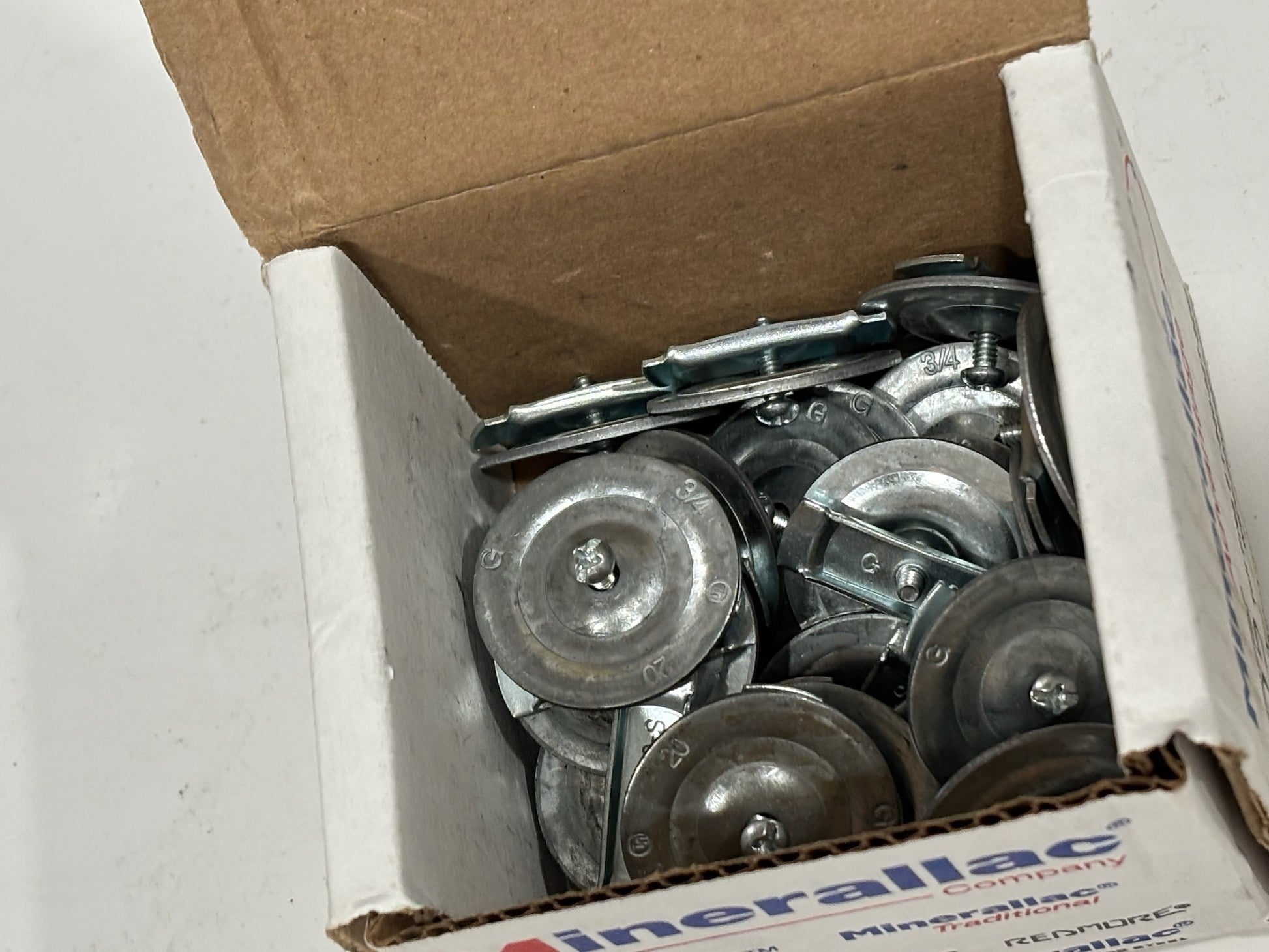The Minerallac 90052 is a 3-piece knockout seal for 3/4" conduit openings. Made of zinc-plated steel, it provides a secure seal for unused knockouts in electrical boxes. The set includes a bracket and screw for easy installation. Ideal for indoor applications, it helps maintain safety and enclosure integrity. Each pack contains 50 seals. .