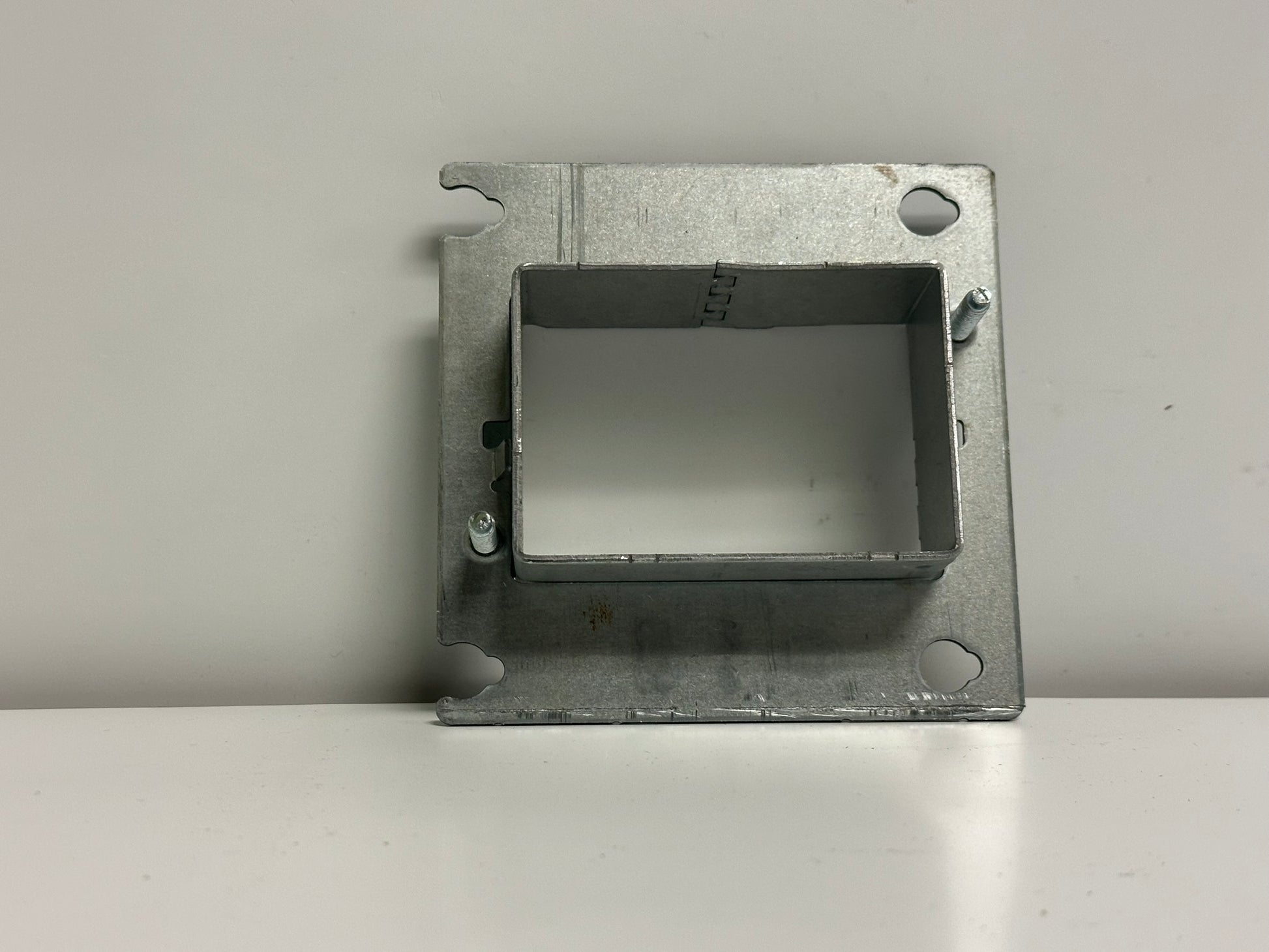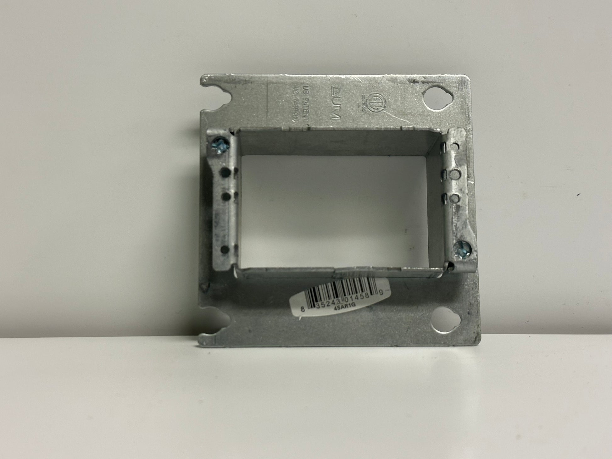 The Orbit 4SAR1G is a 1-gang adjustable mud ring designed for 4" square electrical boxes with a minimum depth of 2-1/8". It features a 16-gauge galvanized steel body and offers an adjustment range of 1/4" to 1-1/4" for flush wall finishes. This makes it ideal for varying wall depths without needing multiple ring sizes. The 4SAR1G is UL listed, RoHS compliant, and widely used in both residential and commercial applications.