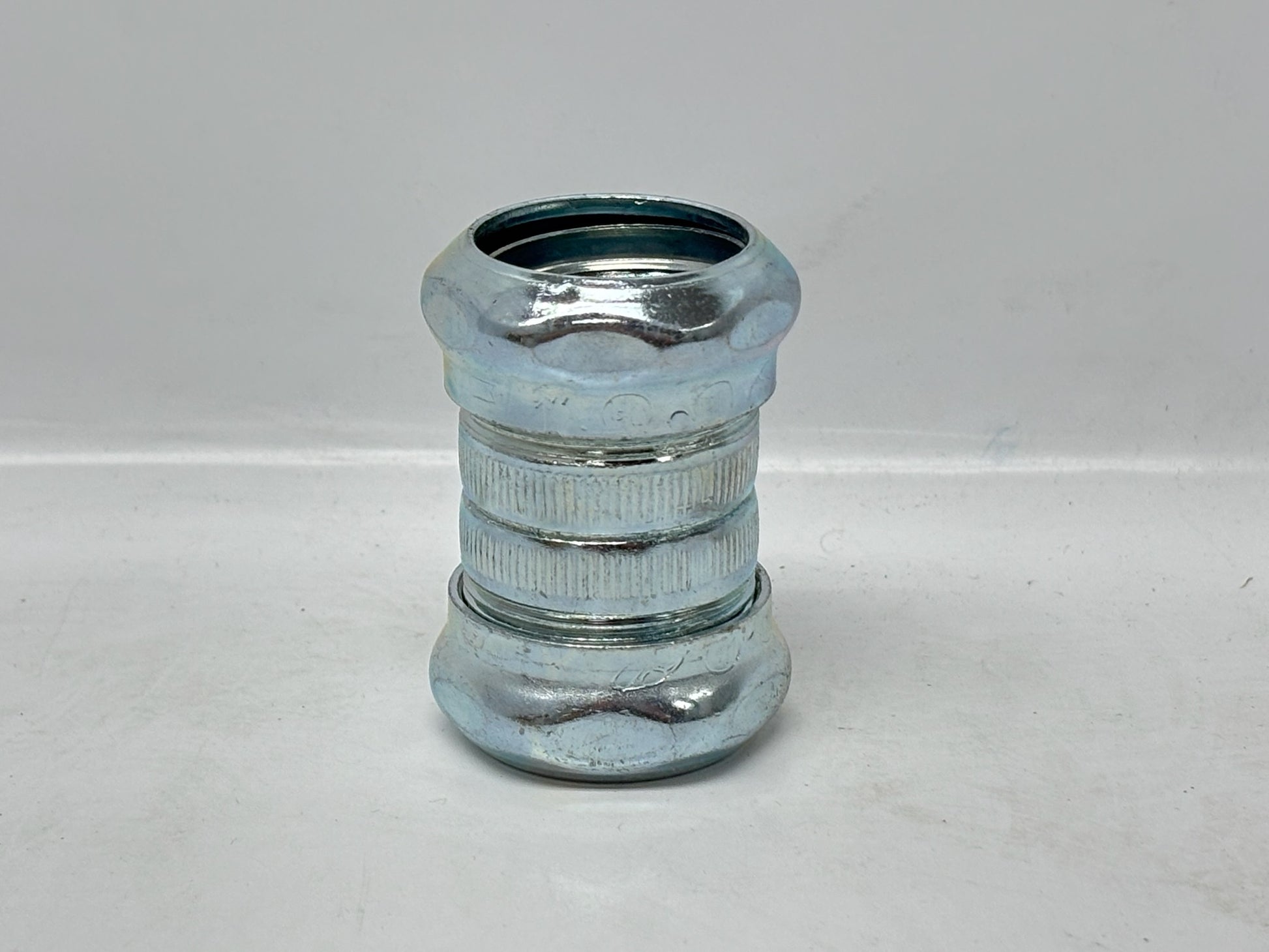 The RACO 2924RT is a 1″ steel compression coupling designed for use with EMT conduit in wet or outdoor locations. It features a zinc-electroplated finish for corrosion resistance and is clearly marked “Wet Location” for inspection compliance. The coupling provides a concrete-tight, raintight seal for secure and durable conduit connections. UL listed and suitable for electrical systems up to 600 volts.