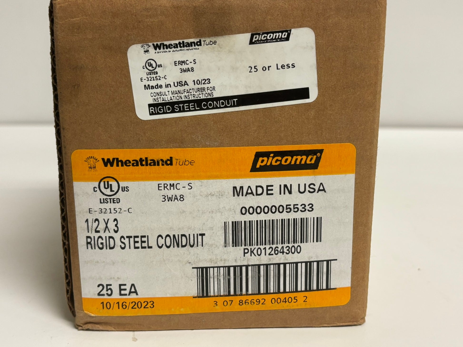 25 PK Wheatland E-32152-C 1" x 12" Galvanized Rigid Conduit Nipple, Threaded Ends