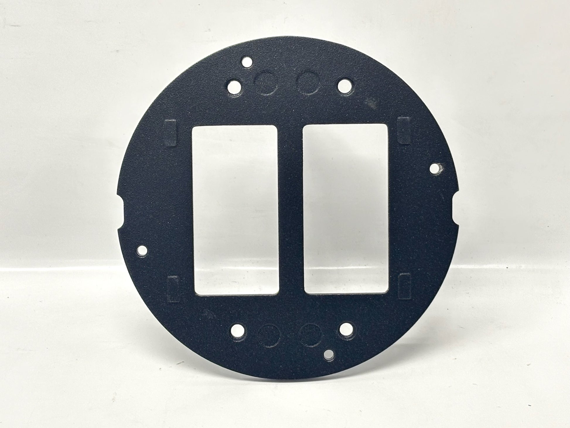 This Hubbell S1SP sub-plate features cast-aluminum construction with a black powder-coat finish, designed for installation in 4″ core-hole concrete floor boxes or poke-throughs. It provides two StyleLine/Decorator openings for power and/or data applications and offers large-capacity, multi-service flexibility. Rated for use with the SystemOne® floor-box system for in-floor delivery of power, voice, data and AV connections.