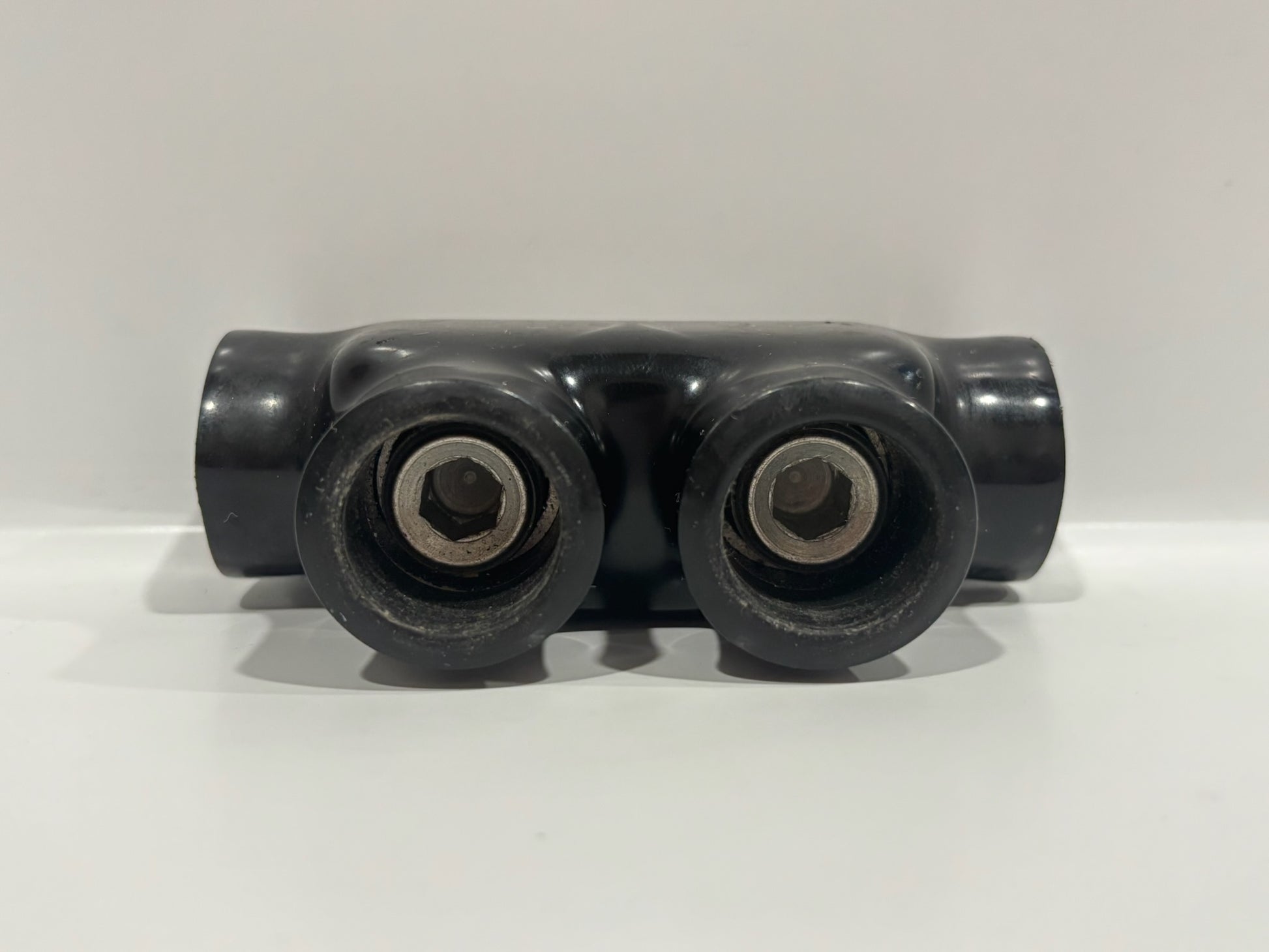 The ILSCO PBT-350 is a dual-port insulated splicer-reducer connector designed for use with aluminum and copper conductors ranging from 6 AWG to 350 kcmil. It features durable plastisol insulation that is chemical-resistant and UV-rated for outdoor use. The connector is tin-plated for corrosion resistance and meets UL and CSA safety standards. Its reliable design ensures secure, long-lasting electrical connections in demanding environments.