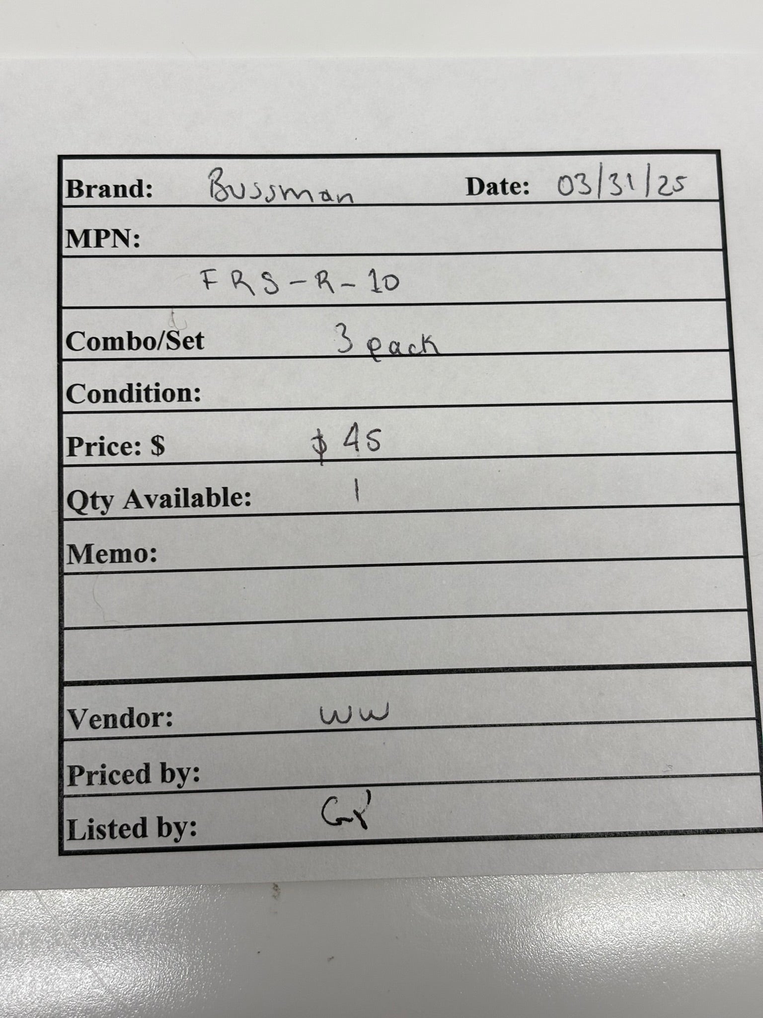 3-Pack Eaton FRS-R-10 Bussmann Series Class RK5 Fuse