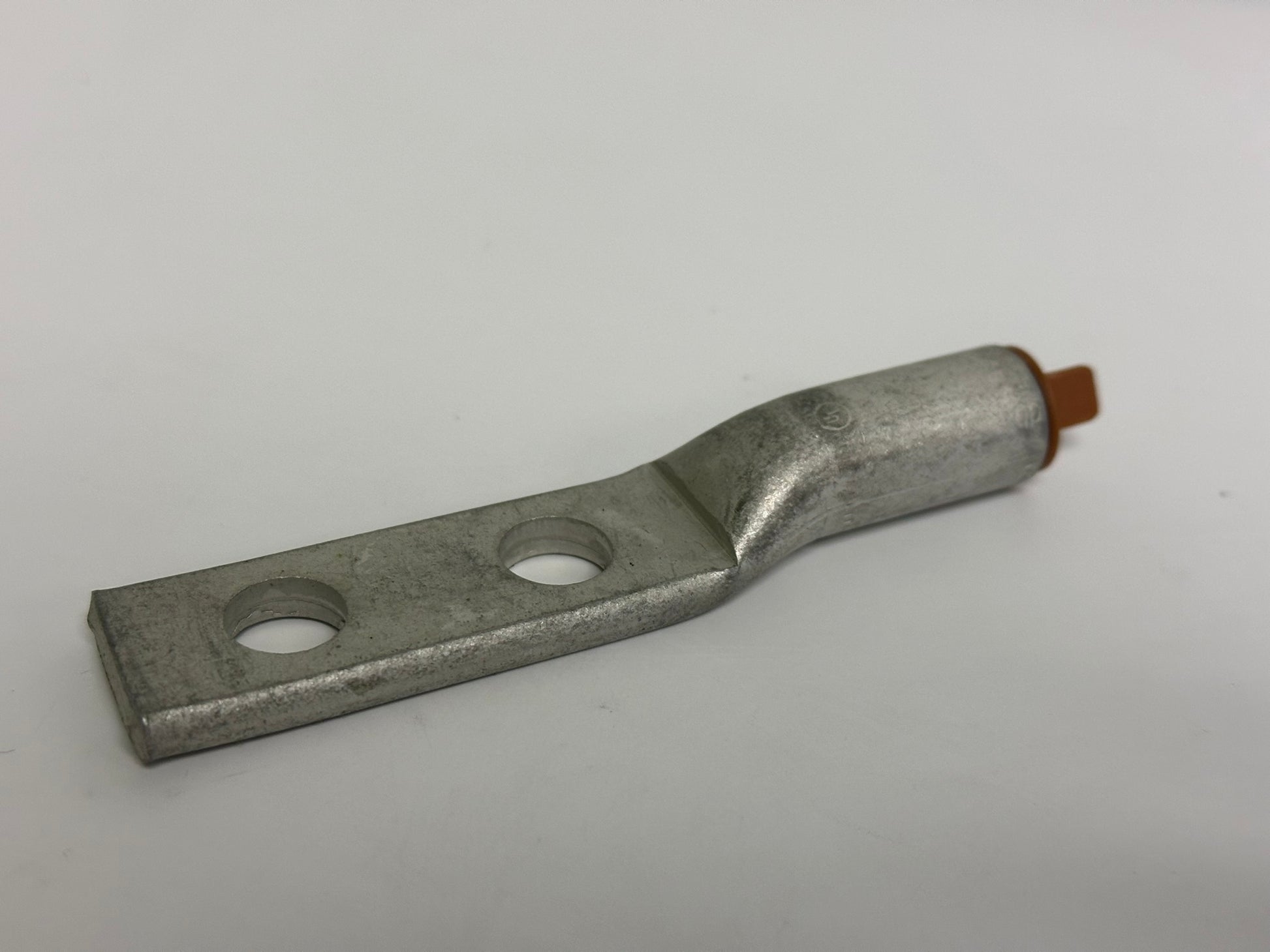 The 3 PK Burndy (YA25A5) Compression Terminal is designed for securely connecting 1/0 AWG aluminum conductors in electrical systems. To use, first strip the insulation from the wire and insert it into the terminal’s opening. The terminal features a 2-hole design with a 3/8" stud and 1-1/16" hole spacing, allowing for easy attachment to electrical equipment or bus bars. After inserting the conductor, use a compression tool to apply sufficient pressure and create a strong, secure connection between the terminal and wire. This terminal is commonly used in industrial, commercial, and residential applications, ensuring durable, reliable connections for aluminum wiring in high-current systems.