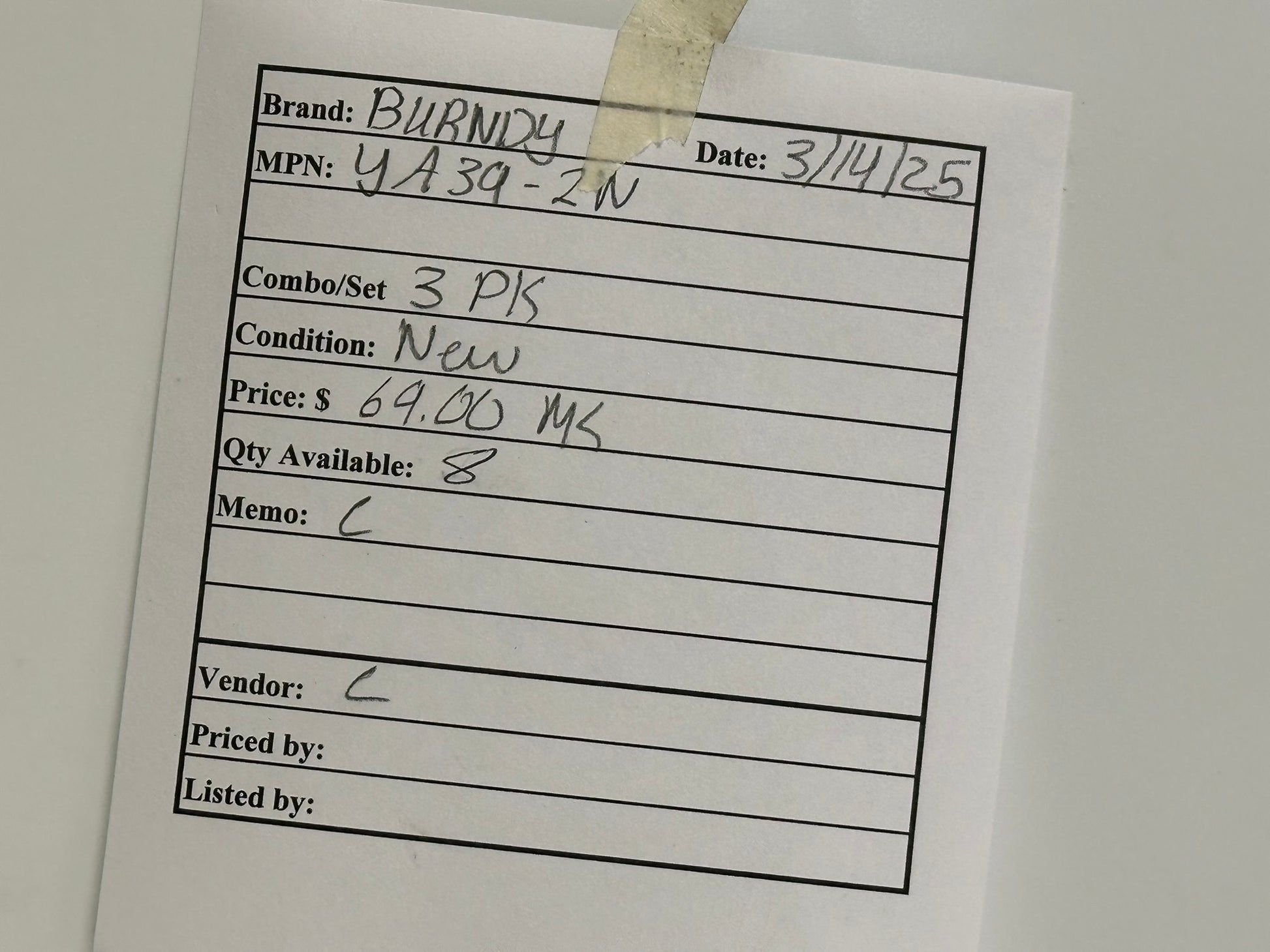 The 3 PK Burndy (YA39-2N) Cu Compression 2-Hole Lugs are designed for use with 750 kcmil copper cables in high-current electrical systems. These lugs feature a 1/2" stud size and 1-3/4" hole spacing, ensuring compatibility with a range of terminals and equipment. To use, strip the insulation from the cable, then insert the wire into the long barrel of the lug, ensuring a proper fit. Next, use a compression tool to crimp the lug onto the wire, creating a strong, solderless connection that is both secure and reliable. These compression lugs are perfect for industrial, commercial, and power distribution applications where durability and high conductivity are essential.