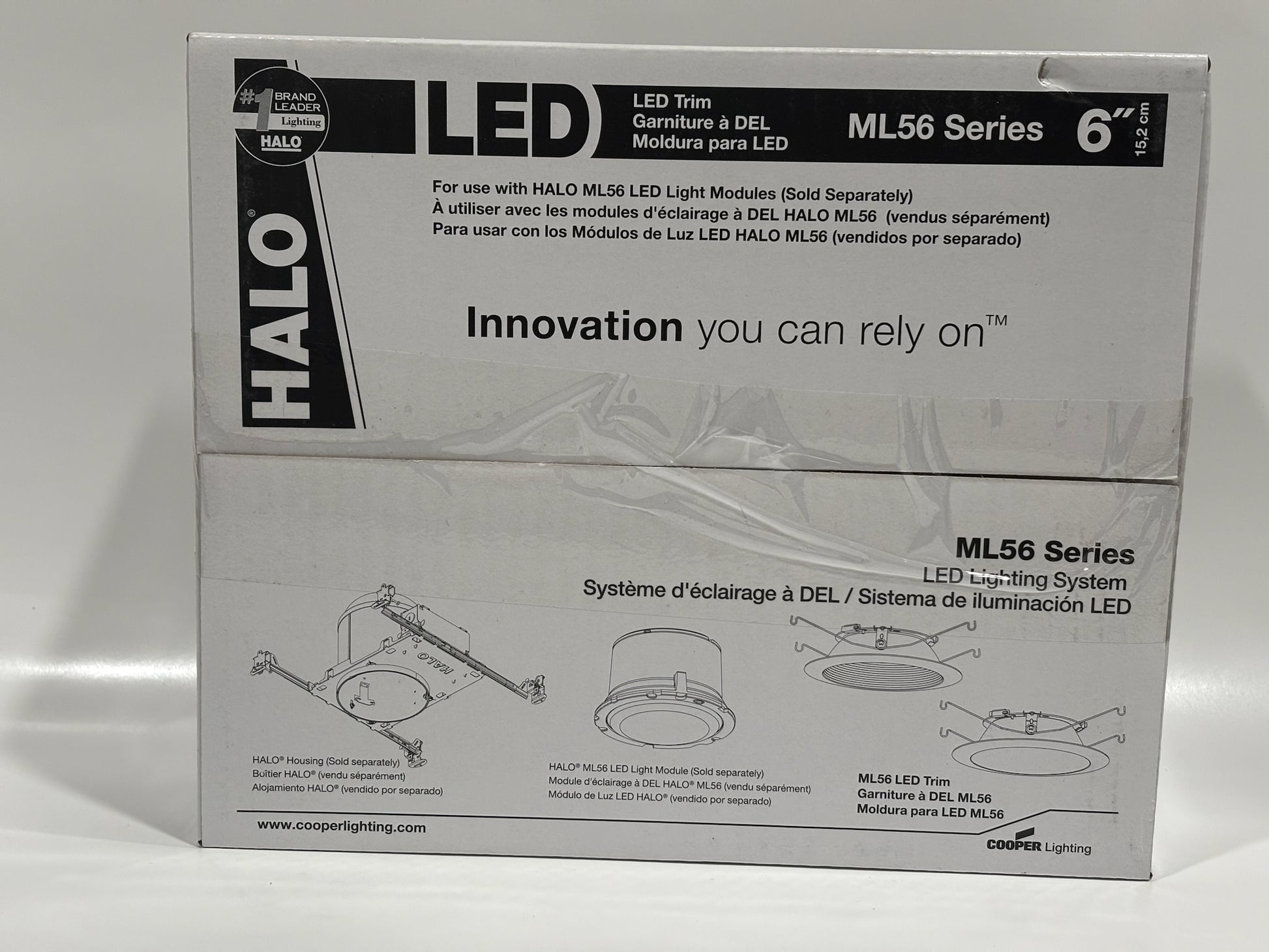 The Halo 6925C is a 6" LED reflector trim designed for use with Halo ML56 series LED modules. It features a specular clear finish with a white flange for a clean, modern look and high light reflectivity. The trim is AIR-TITE certified and rated for wet locations, making it suitable for showers and bathrooms. Its torsion spring mounting ensures a secure, flush fit in compatible housings. Ideal for both new construction and retrofit applications, it delivers efficient and stylish illumination.