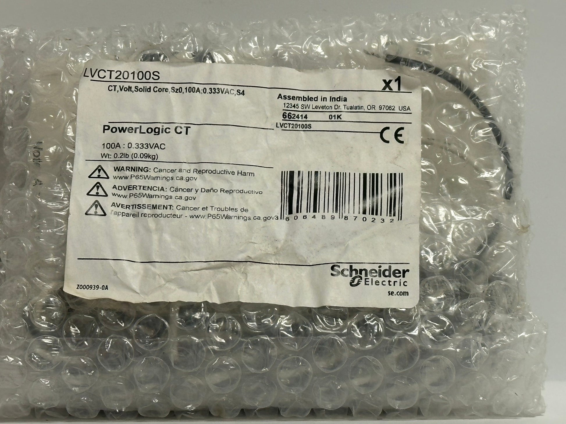 3 PK Schneider LVCT20100S 100A Solid-Core Current Transformer – 0.333V Output