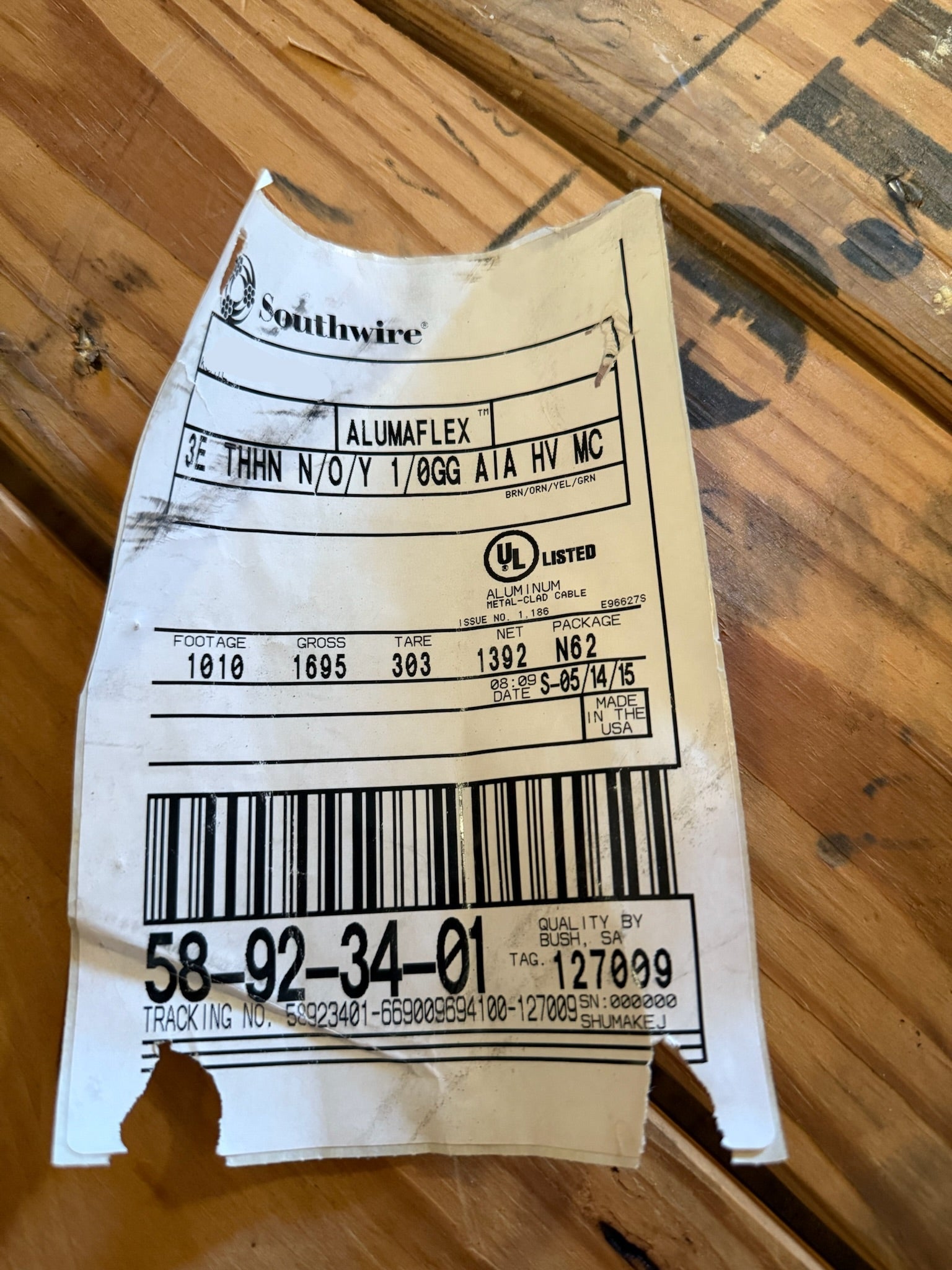 300'ft Southwire 250/3 Steel Mc-Cable Stranded Copper-BR,OR,YE Conductors (300')