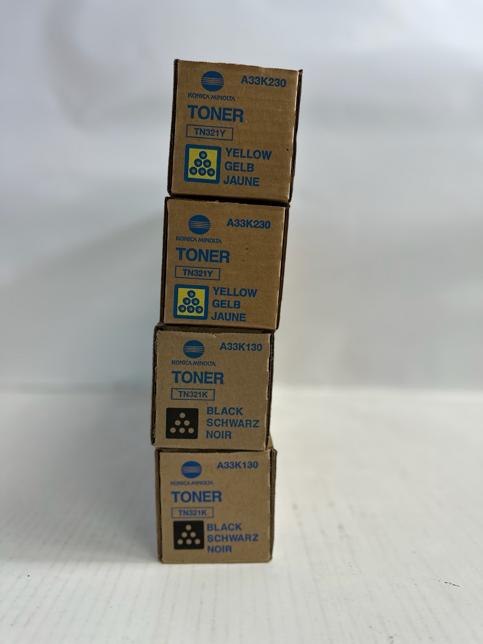 4 Genuine Konica BH C224,C284,C364,C364e Yellow and Black Toners TN321