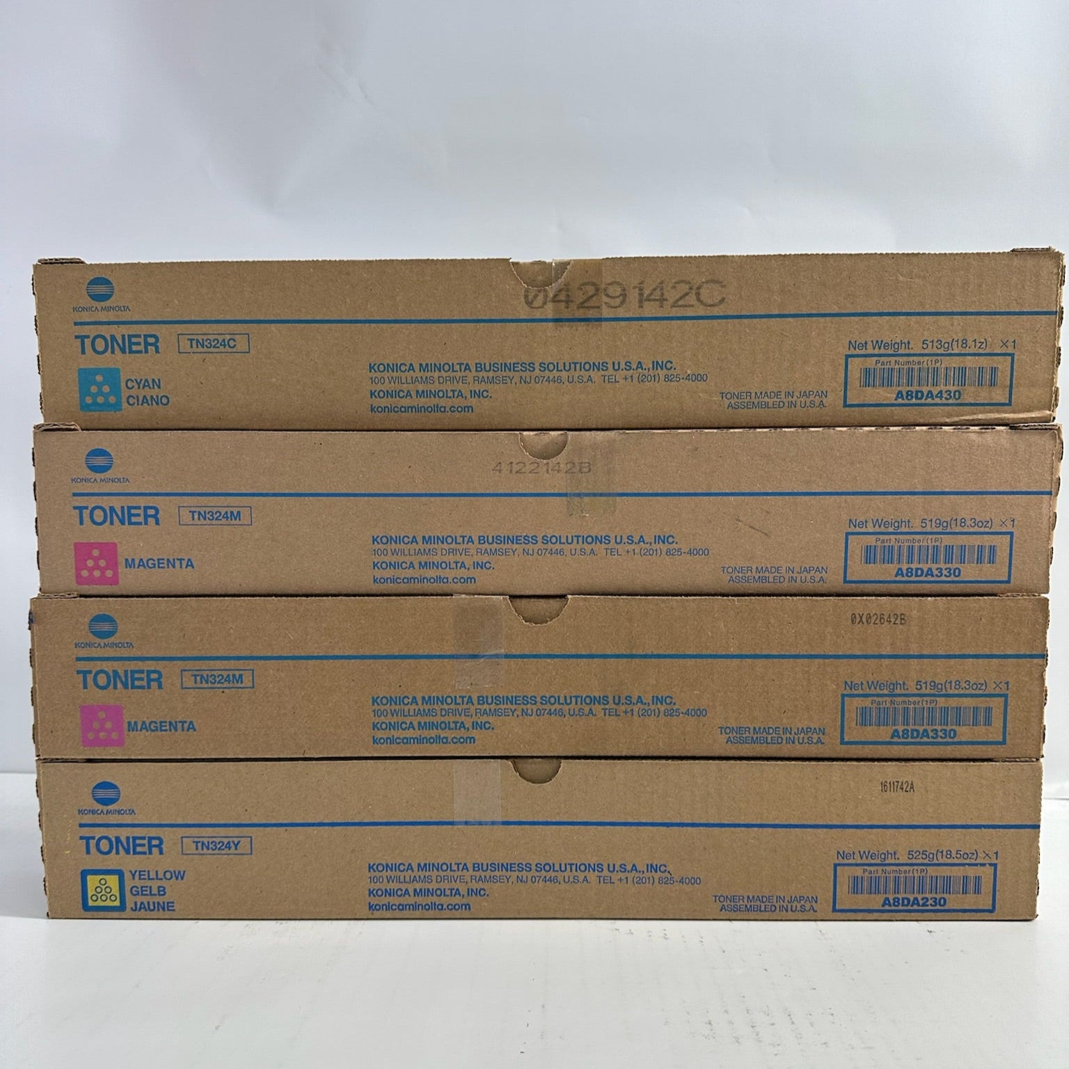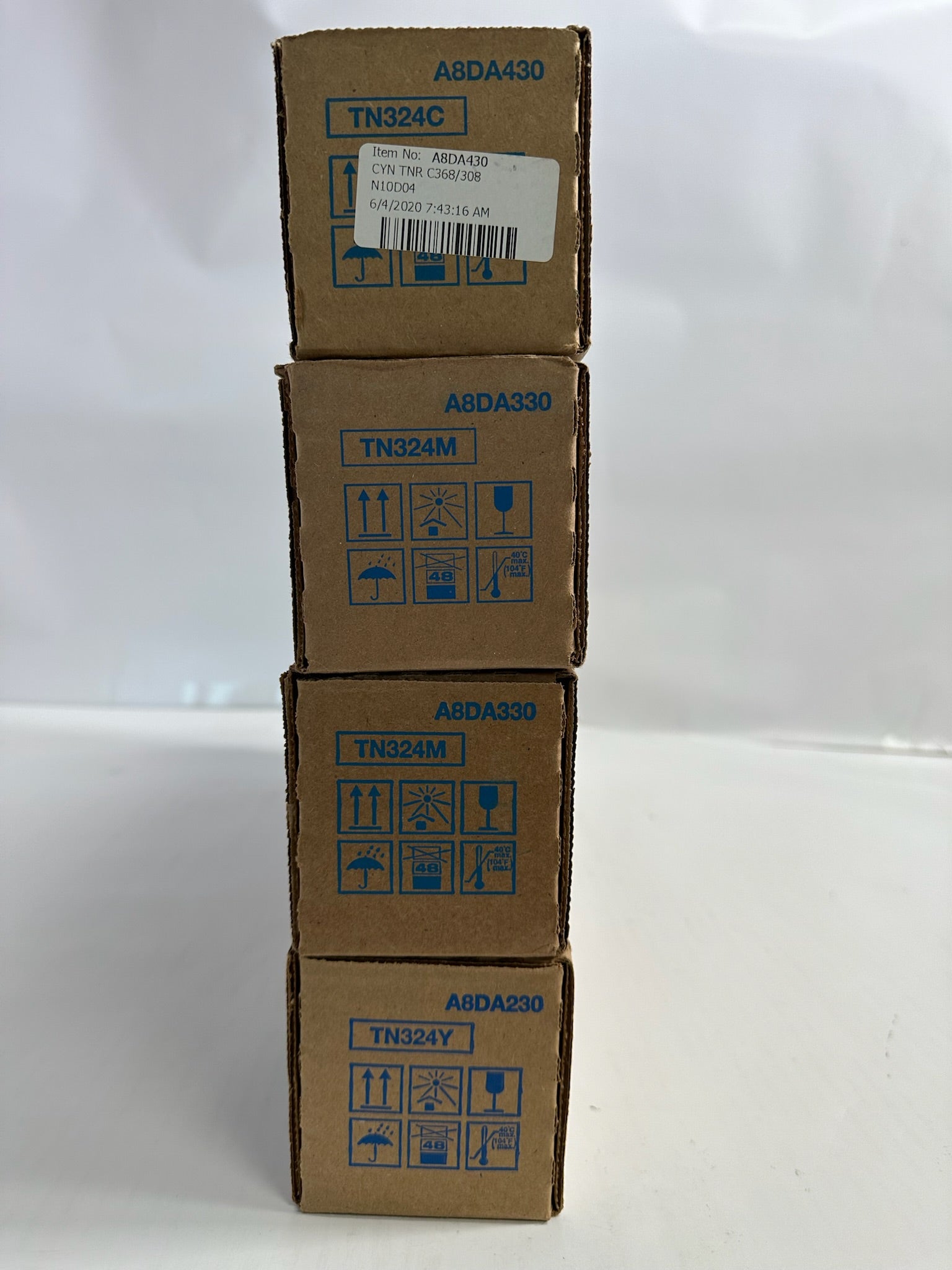 4 New Genuine Konica Minolta Bizhub C258,C308 CMMY Toners TN324 (NO Black)