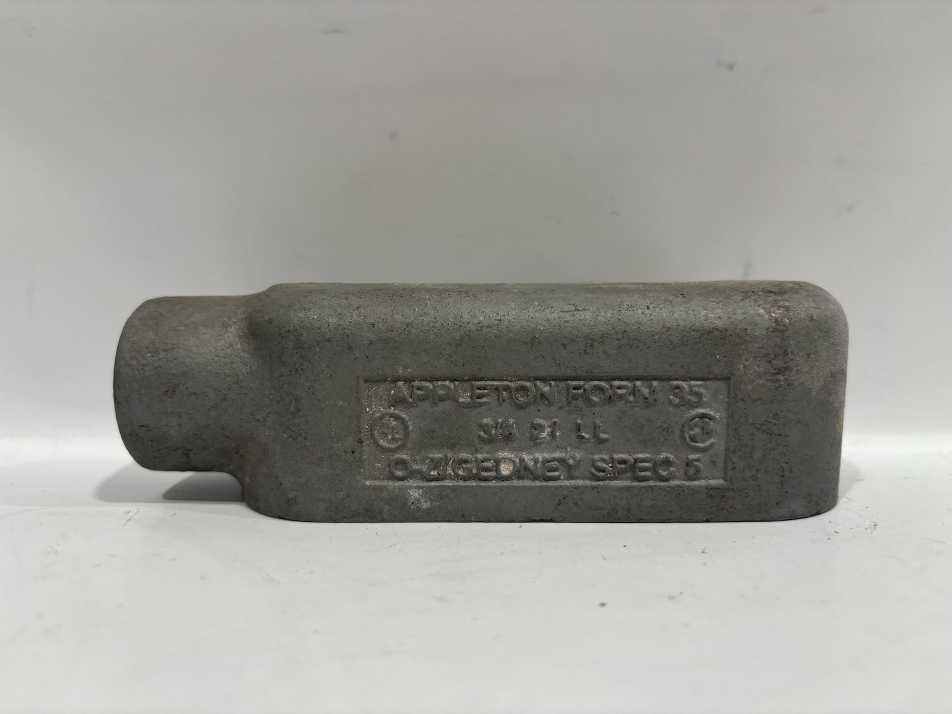 The 4-pack Appleton LL21 Form 35 conduit bodies are designed for use with 3/4" conduit systems. Each body has a 7.5 cubic inch capacity and supports up to 6 AWG conductors, making them suitable for medium-duty wiring applications. The LL (left-side access) configuration allows easy pulling, splicing, or maintenance of wires in tight or complex conduit runs.