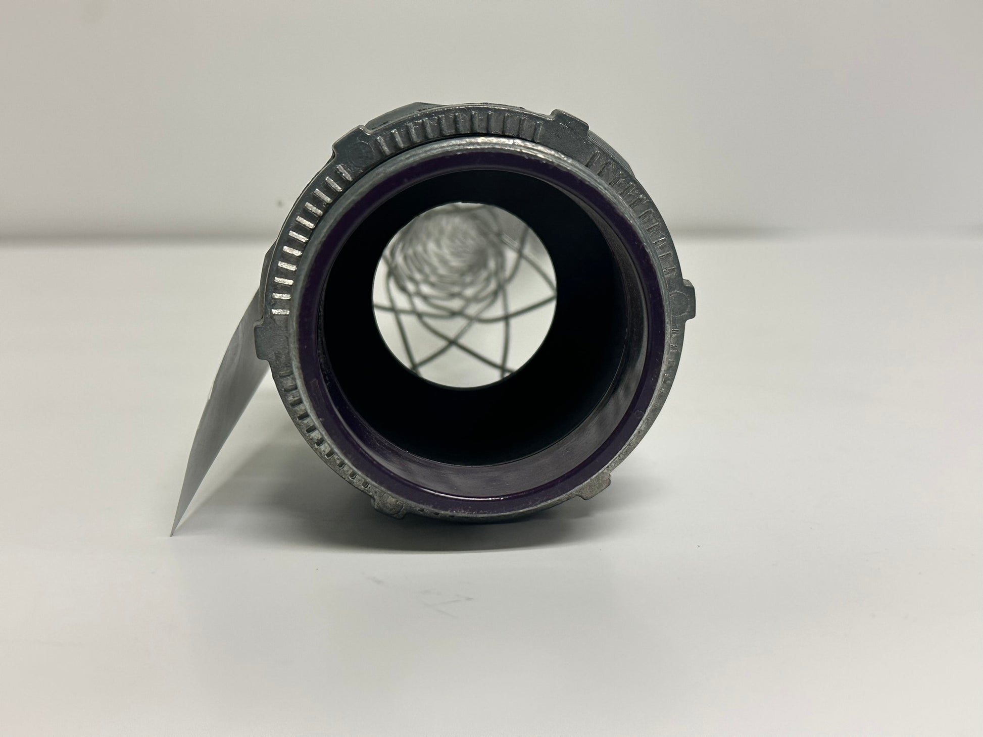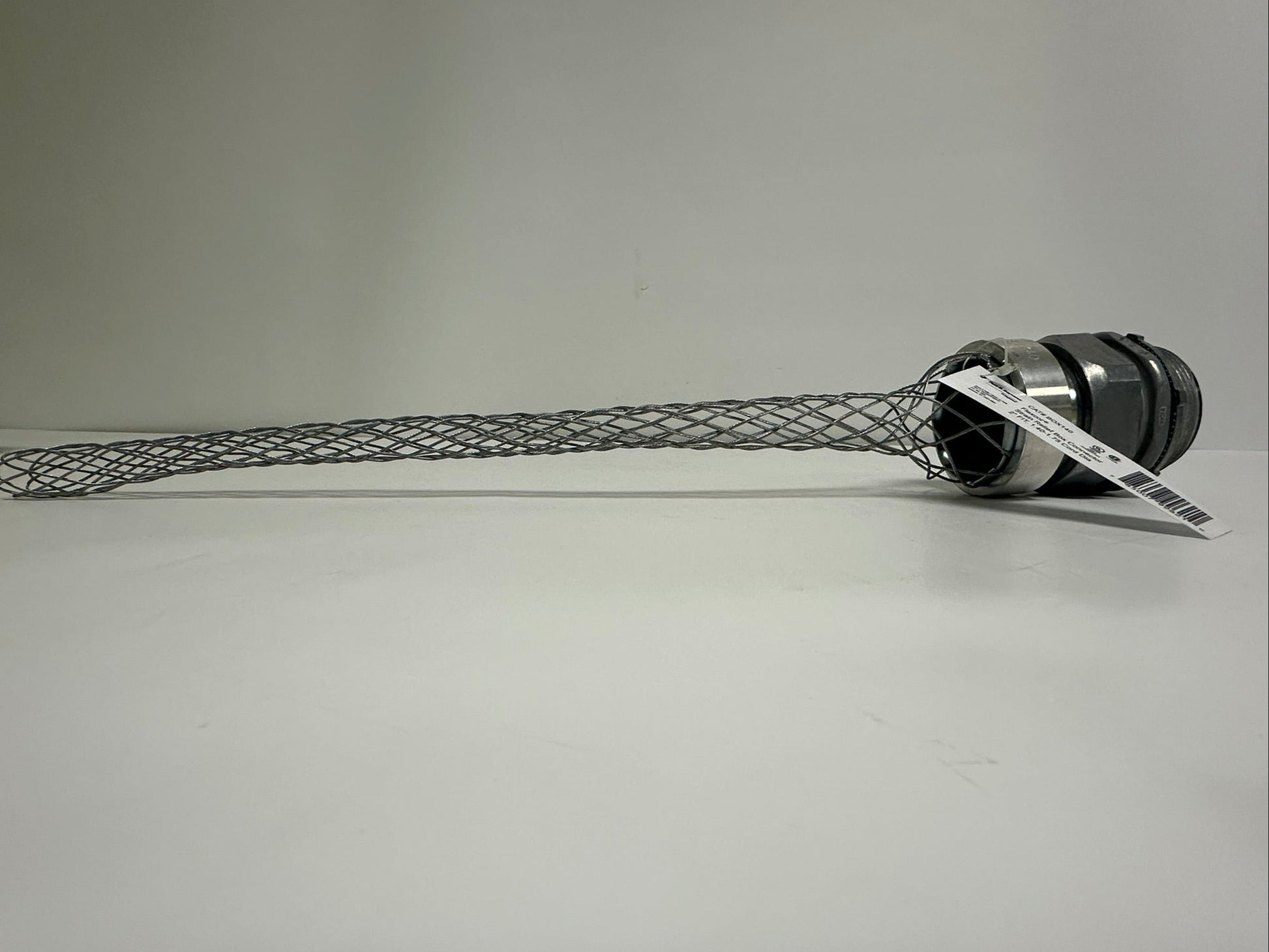 The Pass & Seymour BOX140 is a heavy-duty, dust-tight strain relief cord grip designed for industrial use. It features a 2-inch straight male NPT connection and fits cables between 1.4 and 1.75 inches in diameter. Made from die-cast zinc with an insulated bushing, it provides strong strain relief with a breaking strength of 1,400 lbs. This ensures secure and durable cable protection in power boxes and machinery.