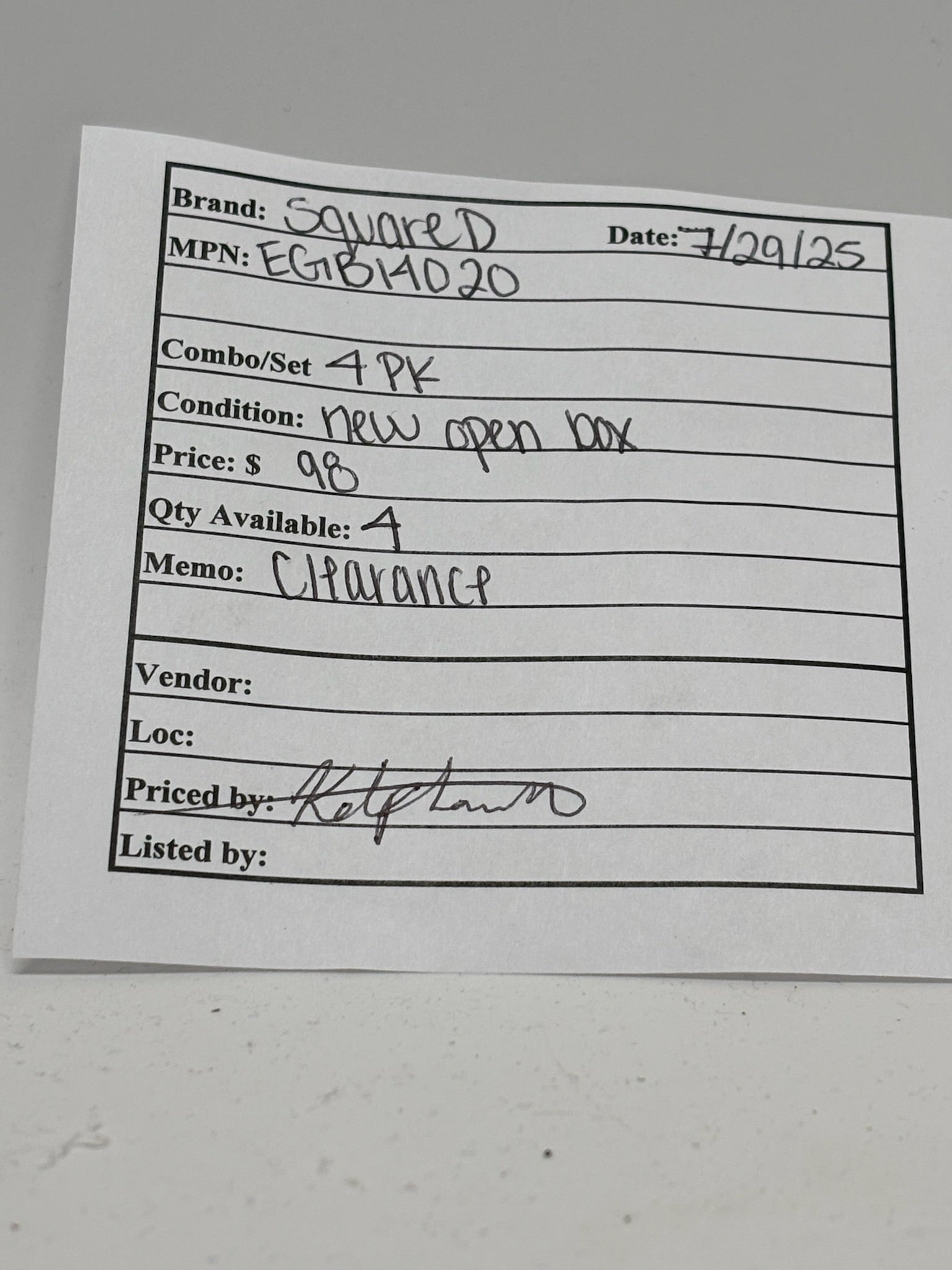 This listing is for a 4-pack of Square D EGB14020 circuit breakers. Each breaker is rated at 20 amps, single pole, and 277 volts AC, making them ideal for commercial and industrial applications. These are bolt-on style breakers, designed for secure installation in compatible Square D panelboards. The EGB series offers high performance with a 14kA interrupt rating at 277V, ensuring reliable circuit protection. All breakers are brand new and factory-sealed, meeting UL standards for safety and quality.