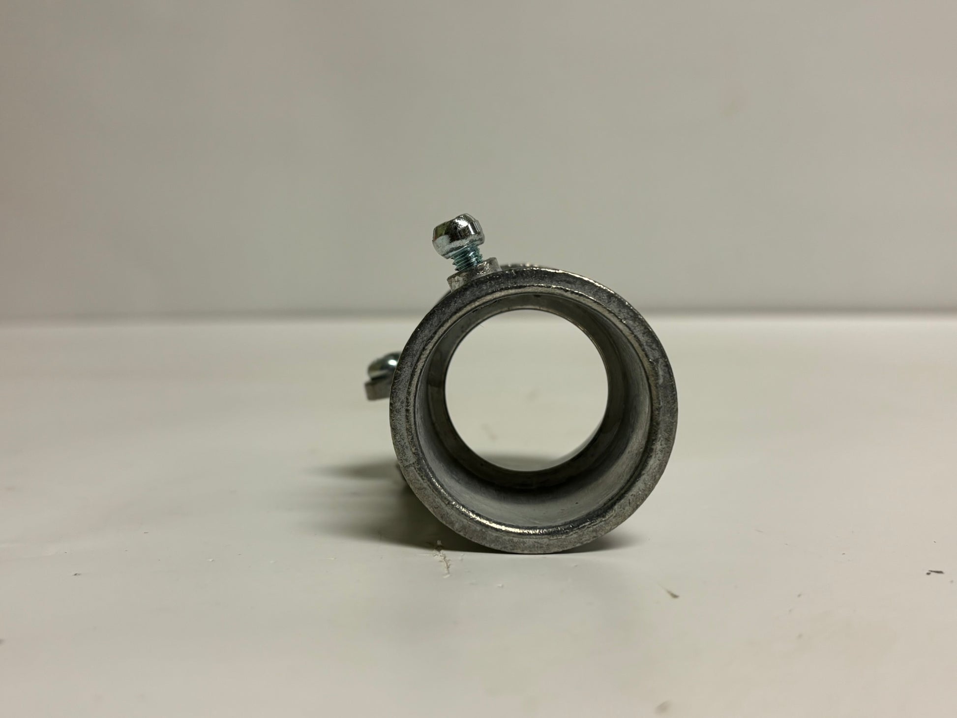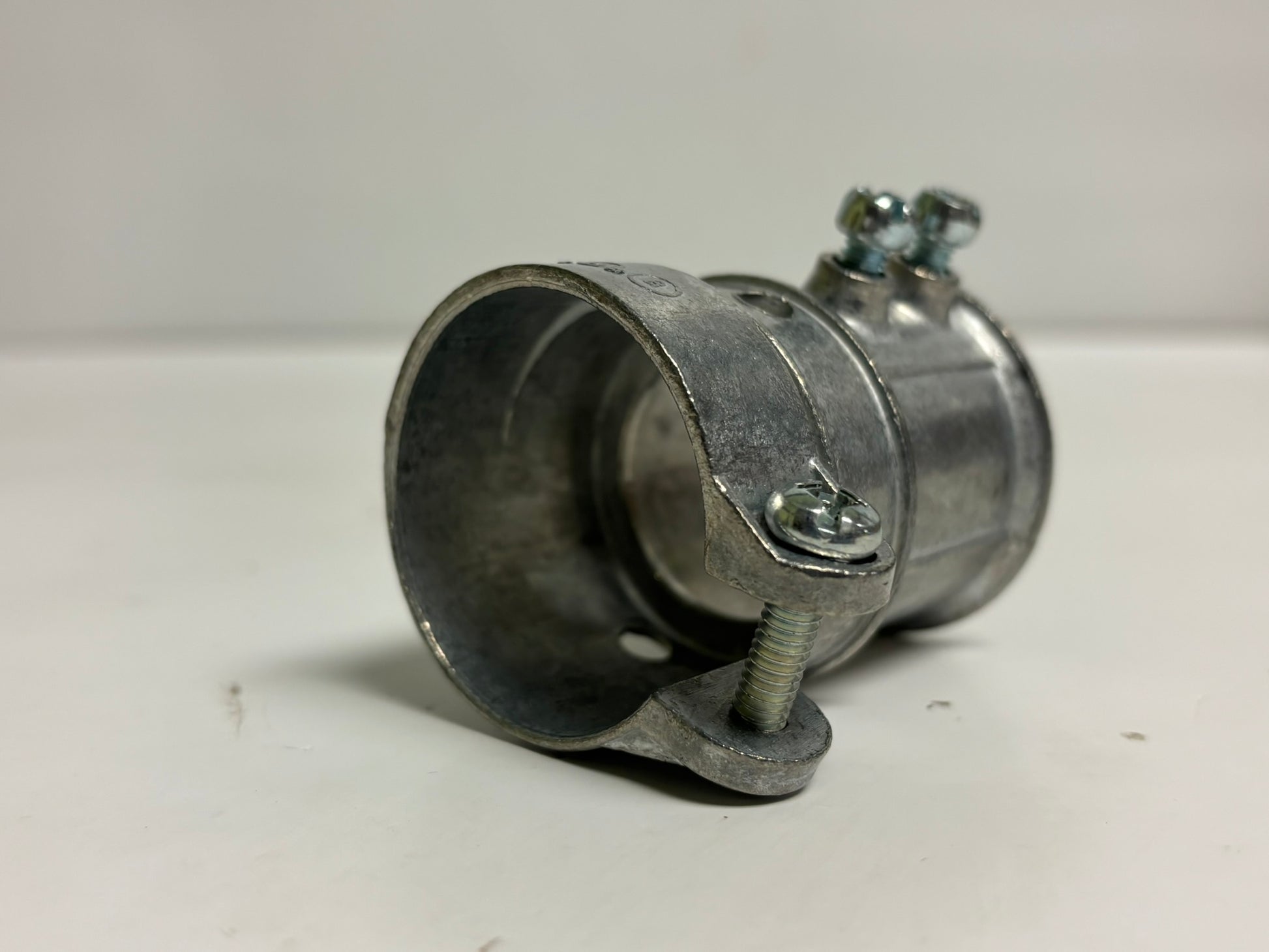 The Bridgeport 284-DC is a 1-1/4" transition coupling used to connect EMT to FMC conduit. It features a zinc die-cast body with a ball burnished, mirror-smooth finish for corrosion resistance. The coupling includes a set screw for the EMT side and a squeeze-type clamp for the FMC side. UL 514B listed, it ensures a secure and code-compliant connection. Ideal for both commercial and industrial electrical installations.