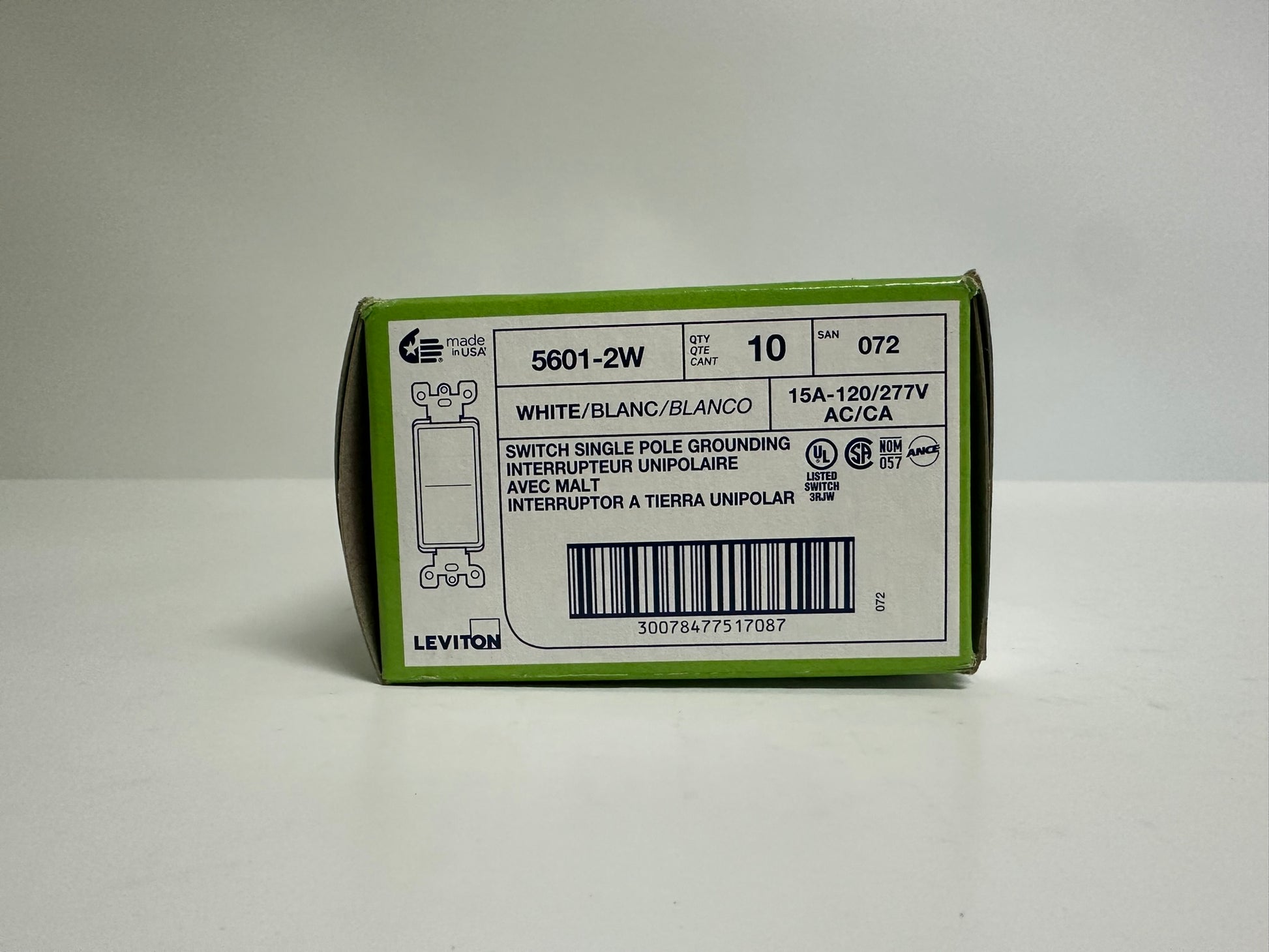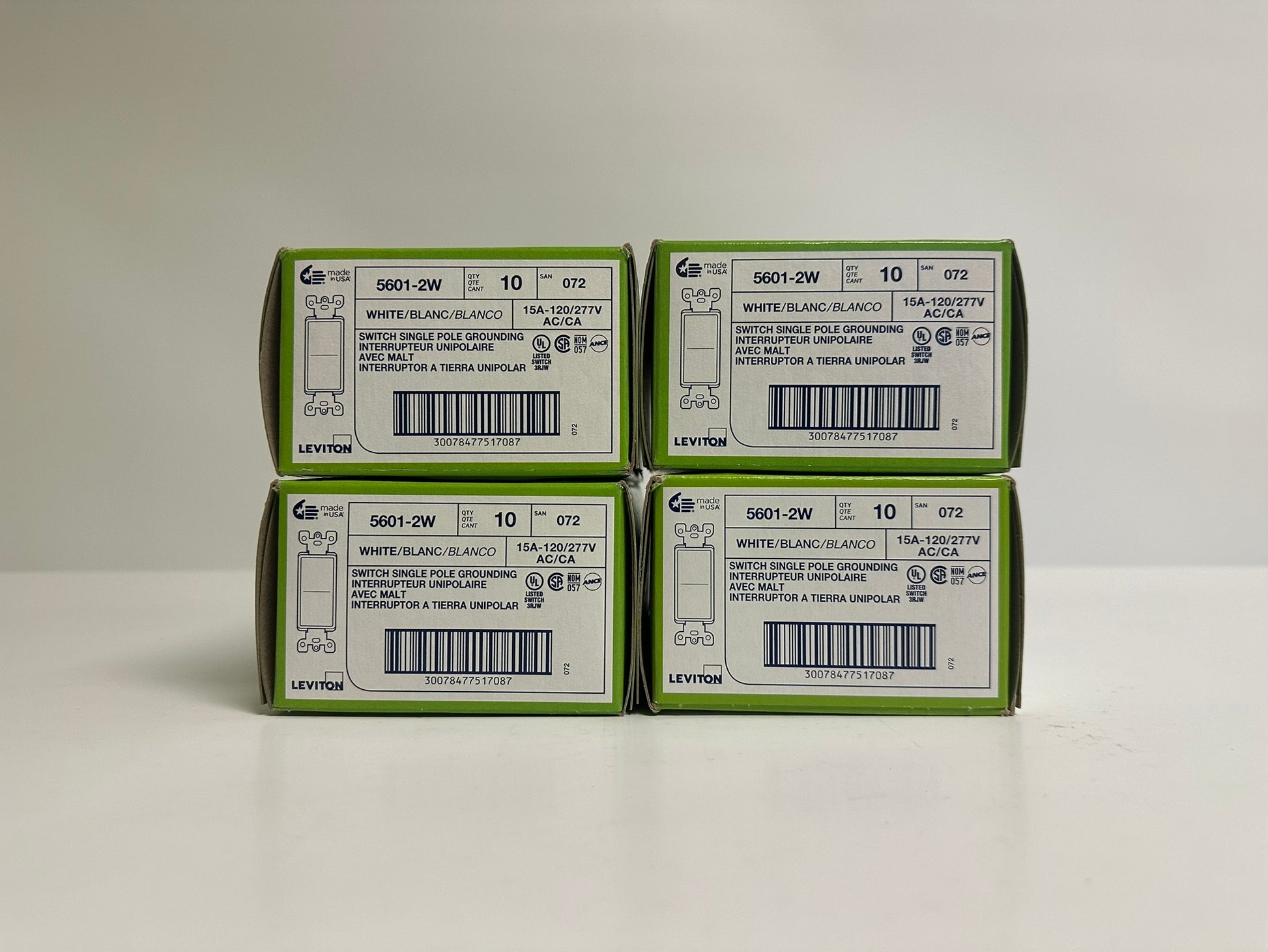 40 PK Leviton (5601-2W) 15A Switch, 15A, Single Pole Residential White