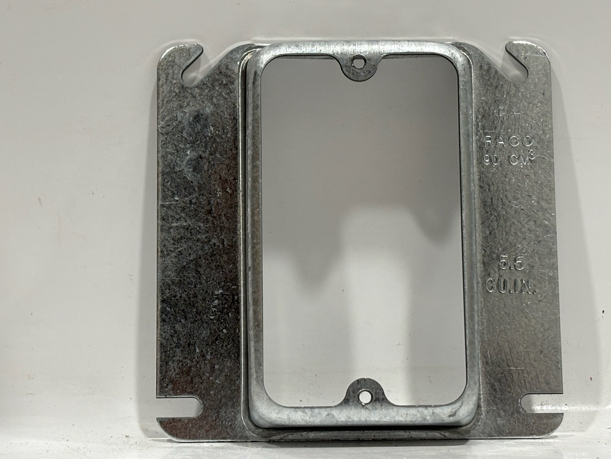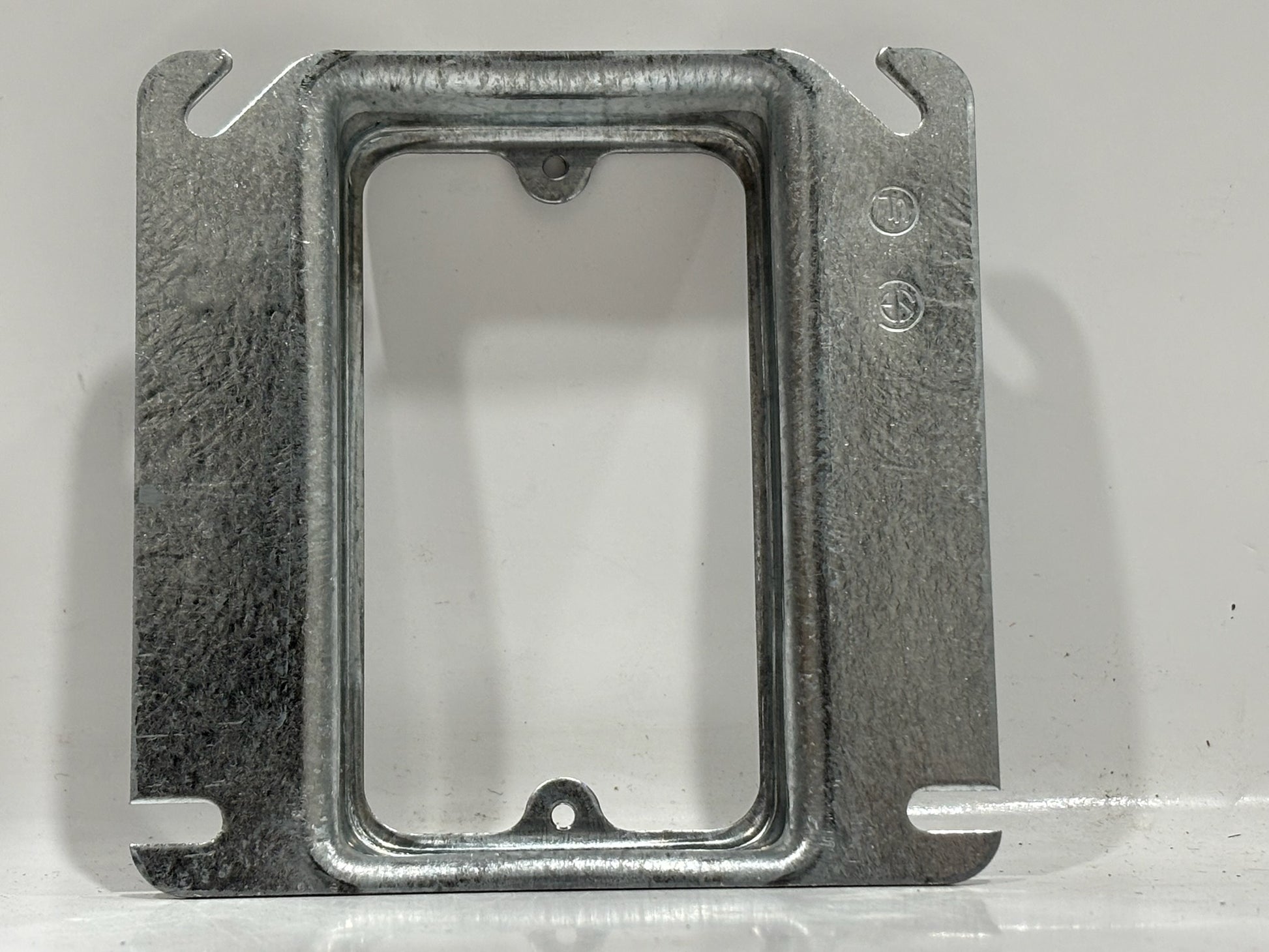 The RACO 773 is a 4″ square steel mud ring with a 3/4″ raised profile designed to fit over standard electrical boxes. It accommodates a single device, such as a switch or receptacle, and provides about 5.5 cubic inches of usable space. Constructed of pre-galvanized steel, it offers durability and corrosion resistance. Angled mounting slots help correct box misalignment up to 12 degrees. It is UL and CSA listed for residential, commercial, and industrial use.