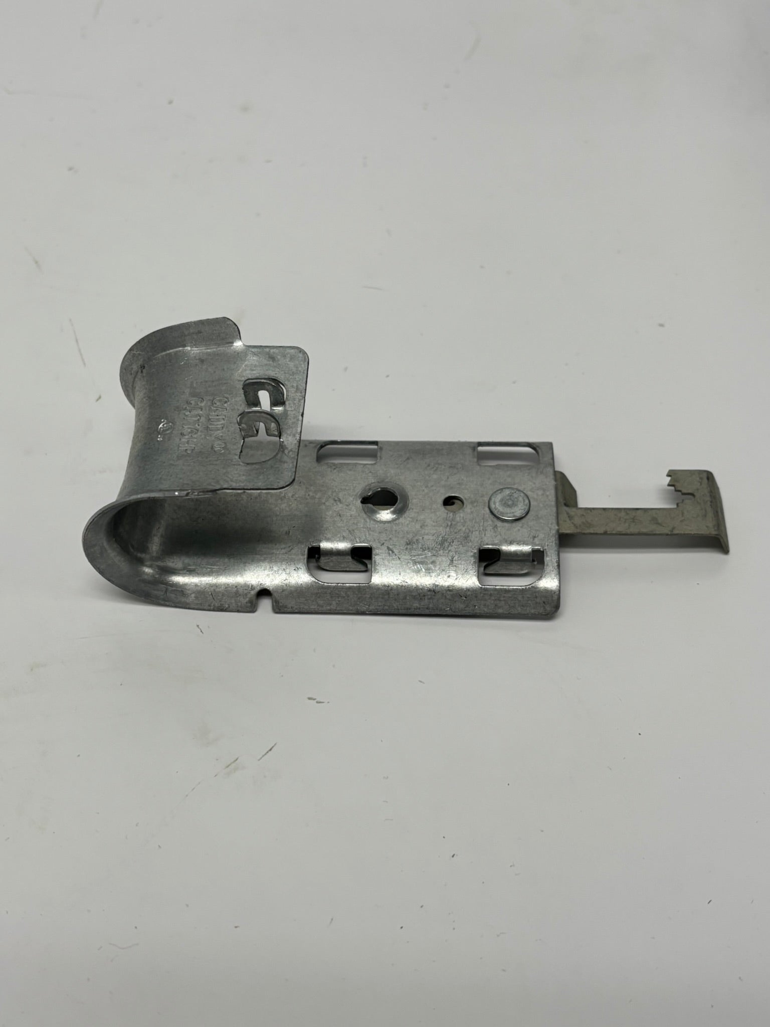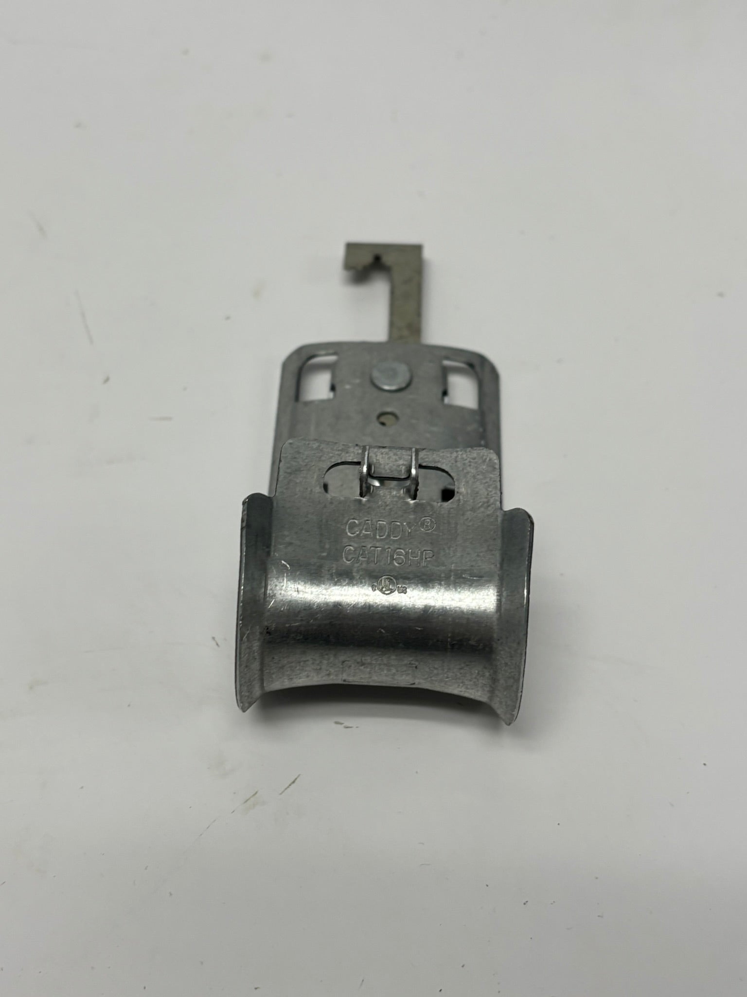 The nVent CADDY CAT16HP4Z34 is a 1-inch diameter J-Hook designed for high-performance cable management, supporting Cat 5e through Cat 7 and fiber optic cables. It features a pre-galvanized steel body with a spring steel multi-function clip, allowing quick attachment to 1/4-inch threaded rods or #12–#8 wire, and supports a static load of up to 30 lbs.