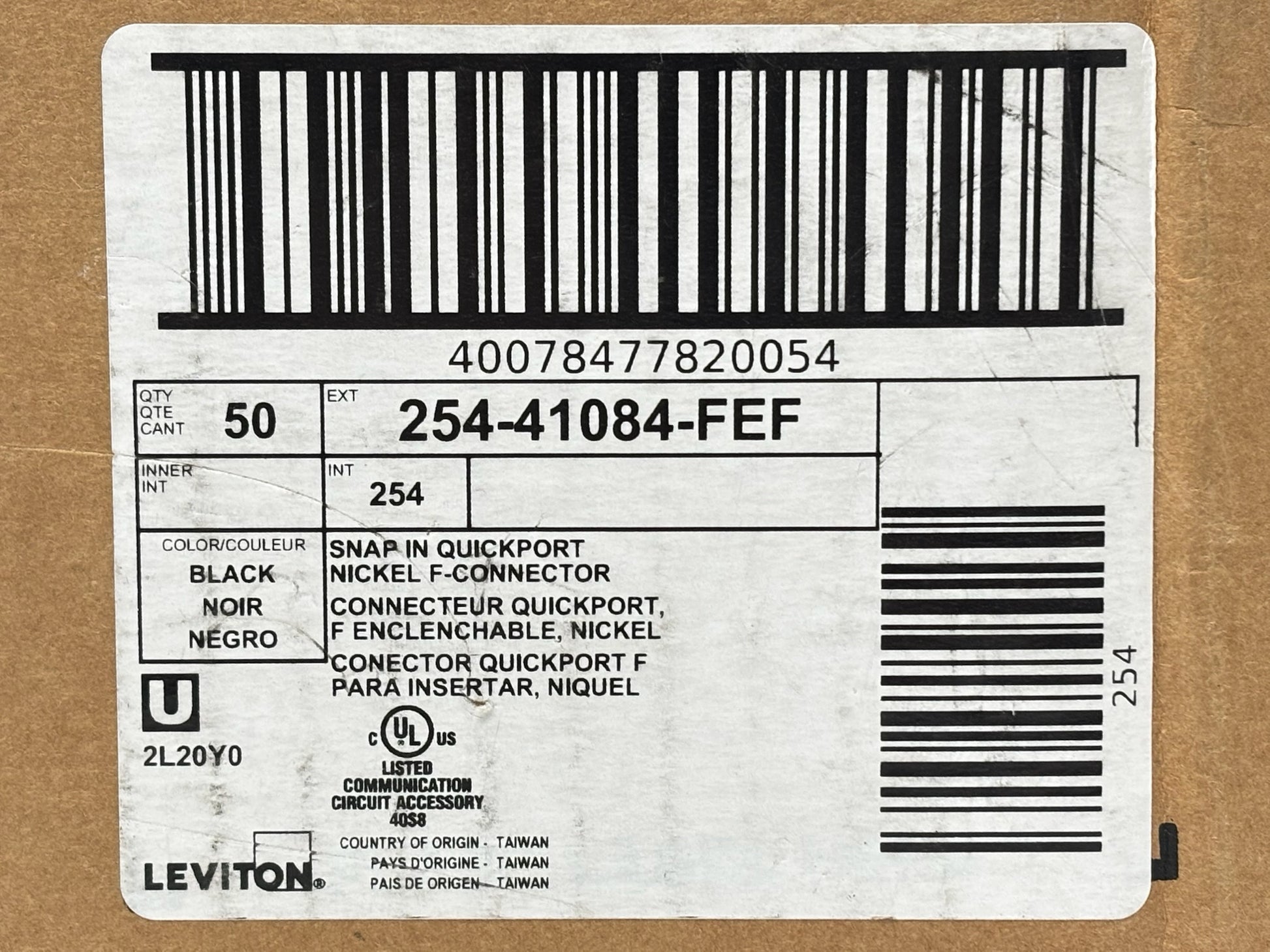 50 PK Leviton 41084‑FEF QuickPort F‑Connector — Female-to-Female 75 Ω Snap-In Adapter