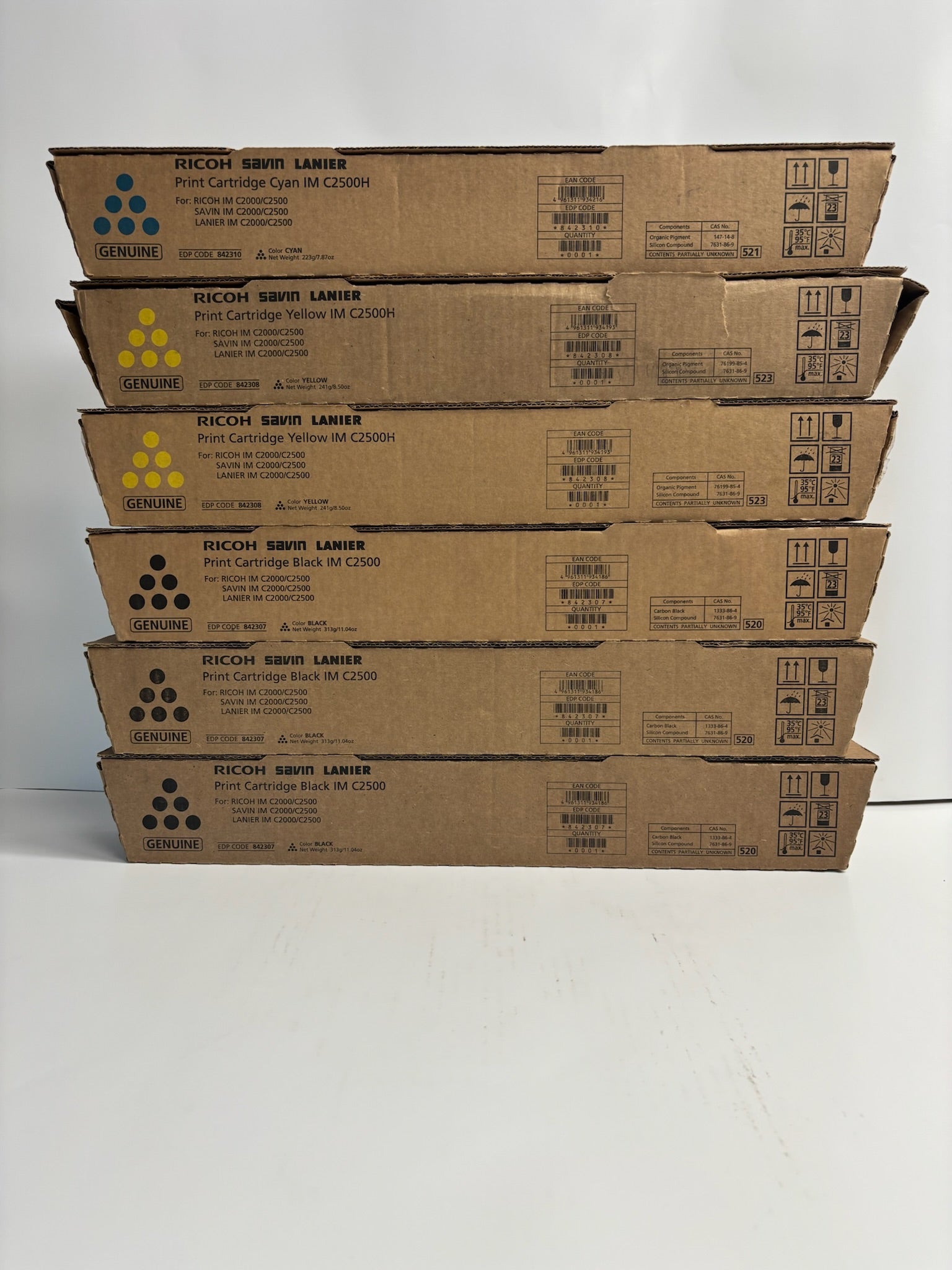 6 Genuine Ricoh IM C2500H, IM C2000 CYYKKK Toners 842307,842308,842310 (No Mag)
