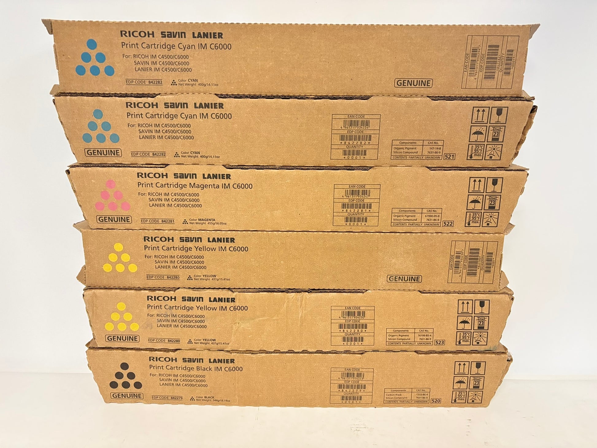 6 Genuine Ricoh IM C4500/C6000 CCMYYK Toners 842282,842281,842280,842279