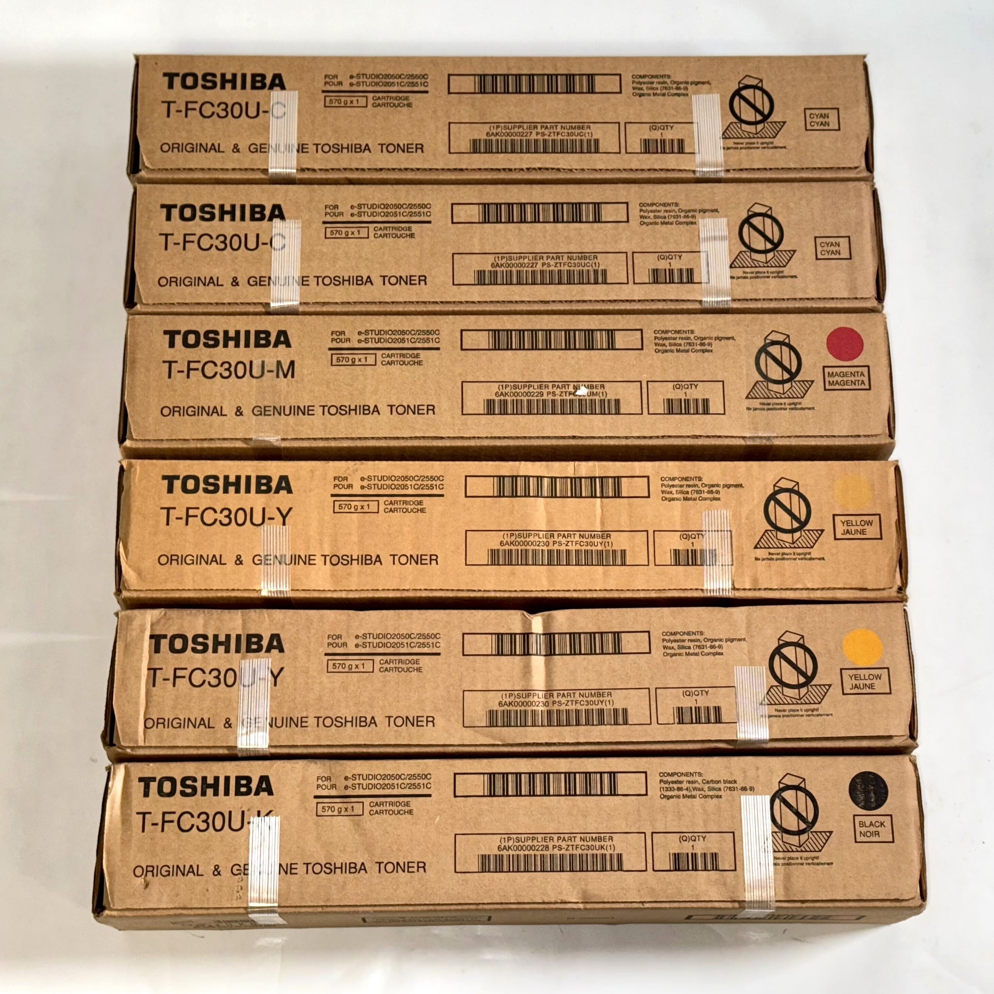 6 Genuine Toshiba e-STUDIO 2050C, 2550C, 2051, 2551C CCMYYK T-FC30U Toners