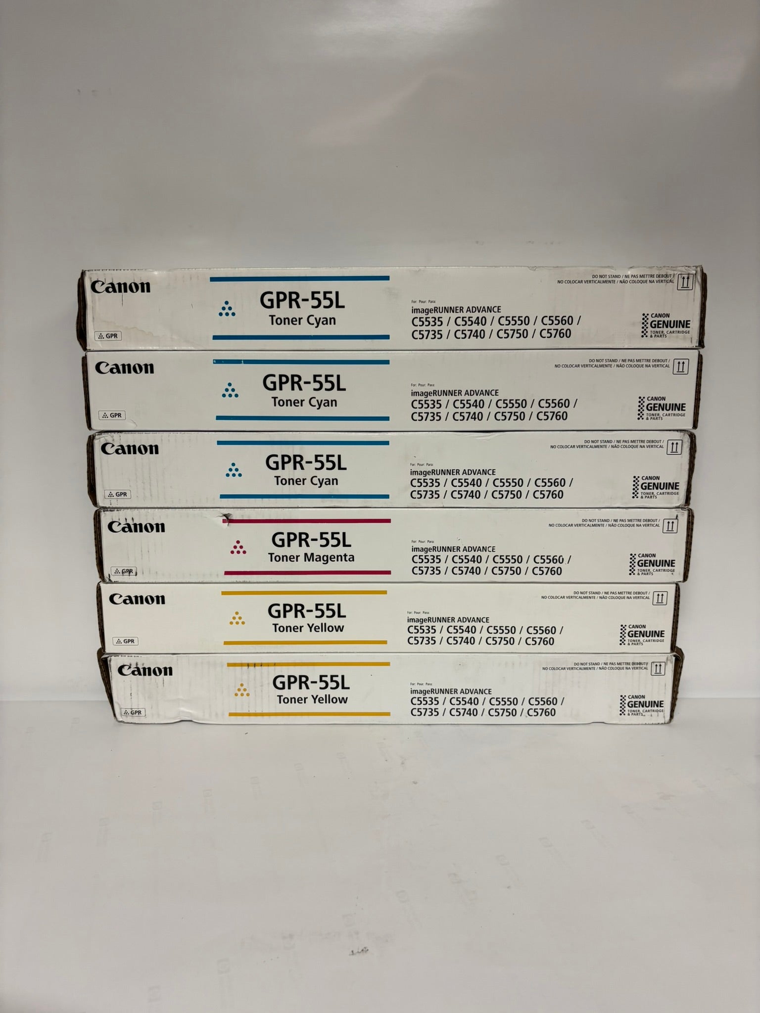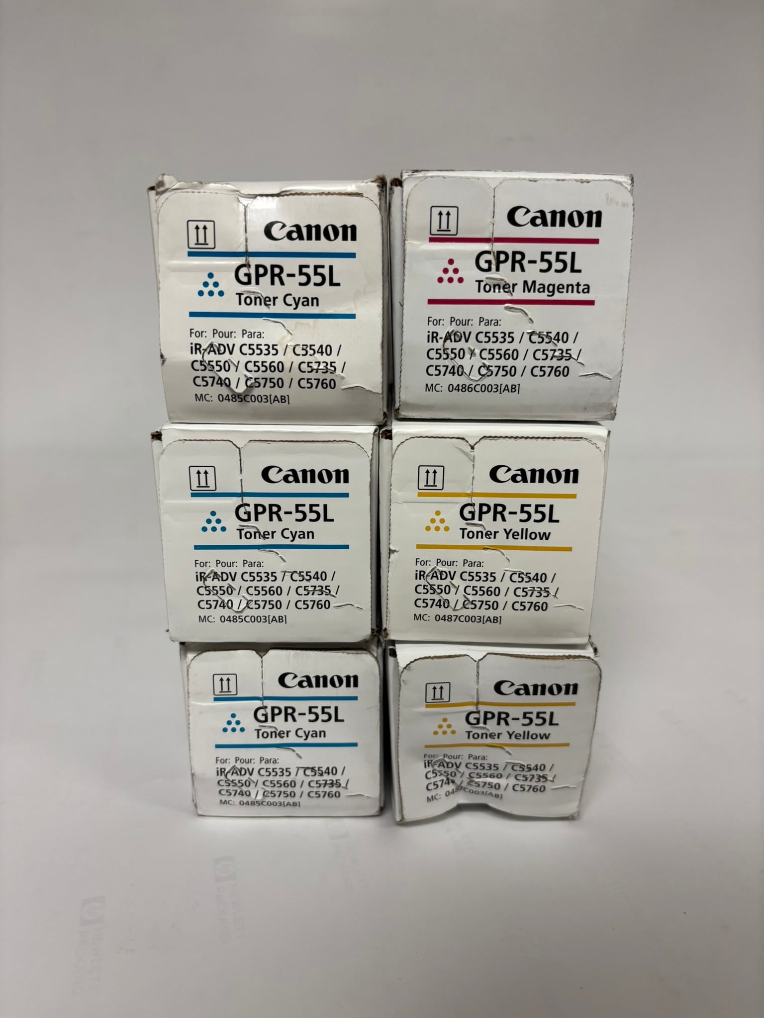 6 New OEM Canon GPR-55L CCCMYY Toners (No Black)